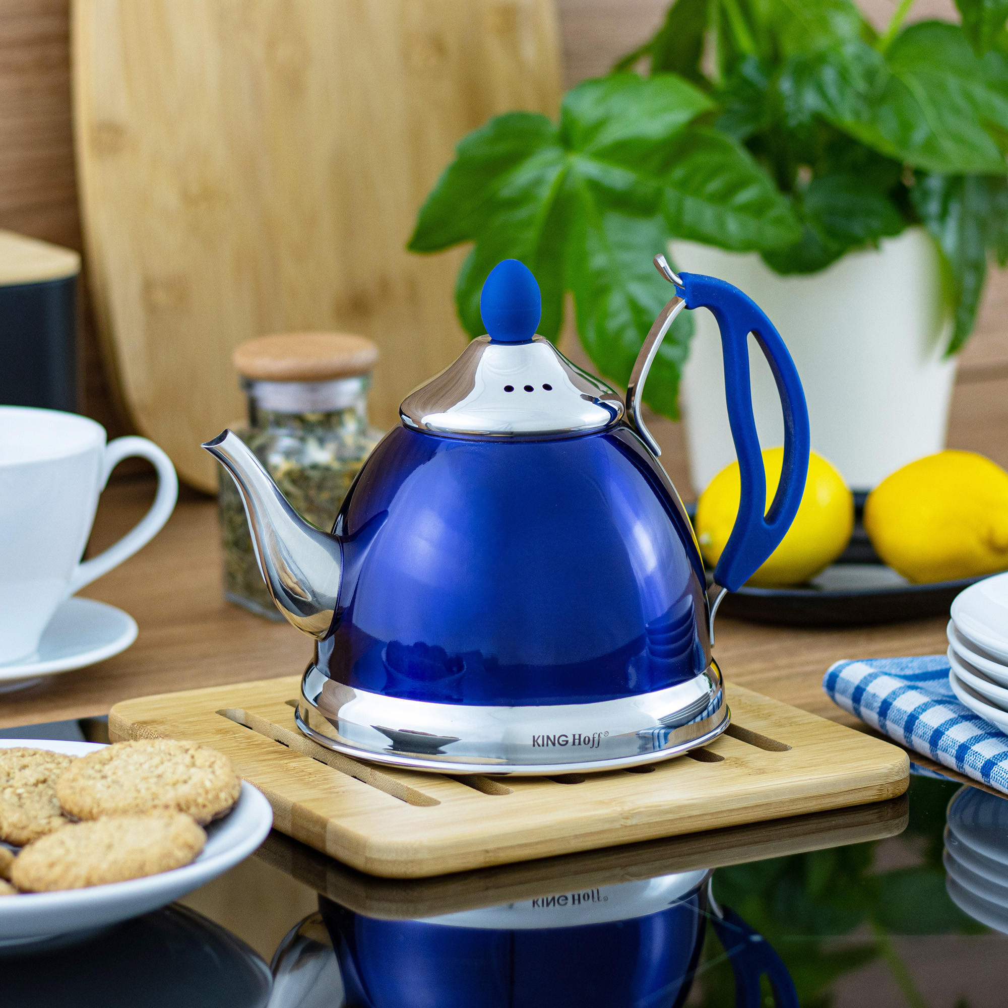 Elegancki imbryk Kinghoff KH-3762 to stylowe i praktyczne uzupełnienie każdej kuchni. Wykonany z trwałej stali nierdzewnej, sprawdzi się zarówno podczas codziennego parzenia herbaty, jak i przy okazjonalnych spotkaniach z gośćmi. Dostępny w kilku intensywnych kolorach, takich jak niebieski, czerwony, fioletowy czy brązowy, pozwala dopasować go do własnych upodobań i wystroju wnętrza.