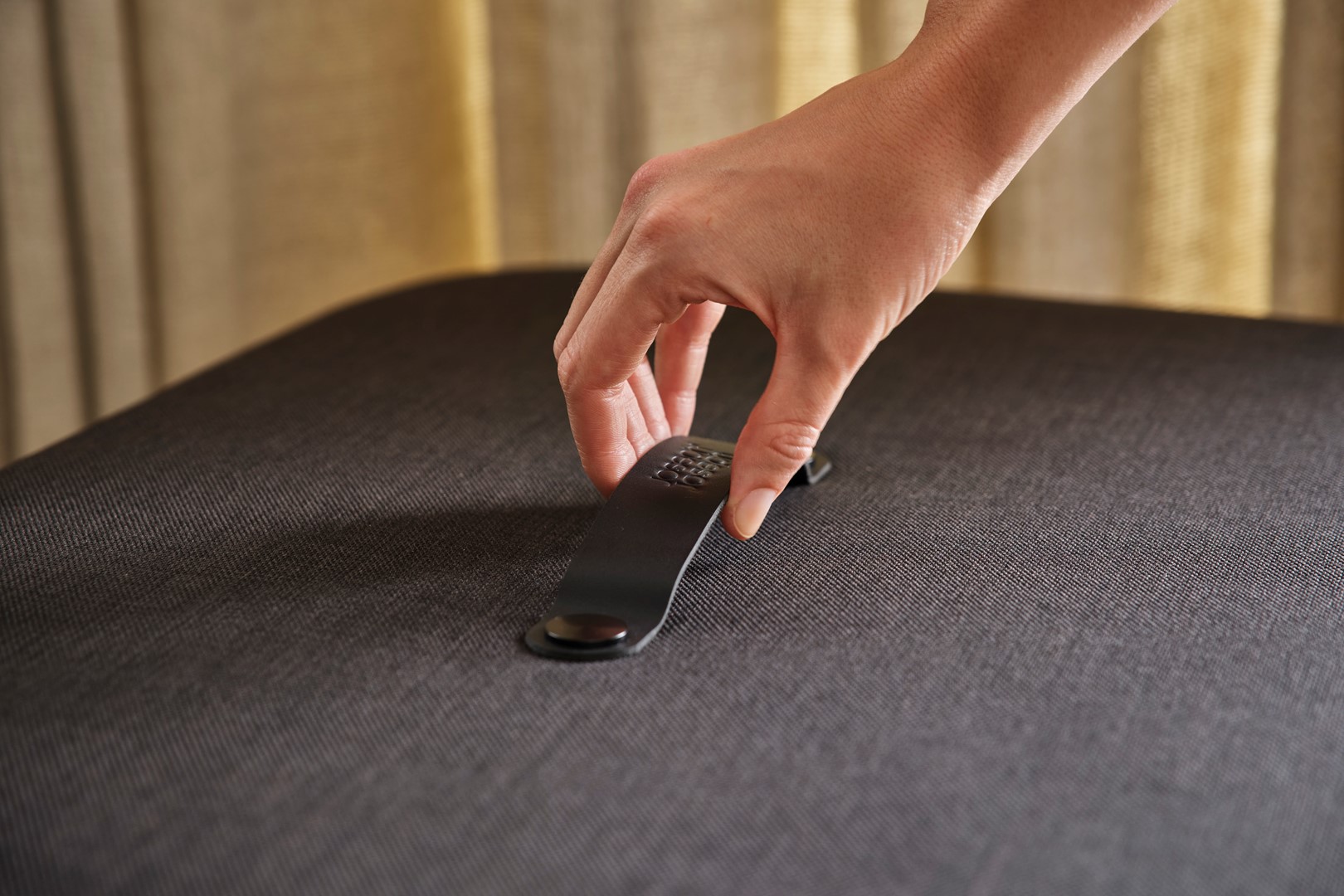 – dyskretny – posiada pokrywkę wykończoną tkaniną, ze skórzanym uchwytem,