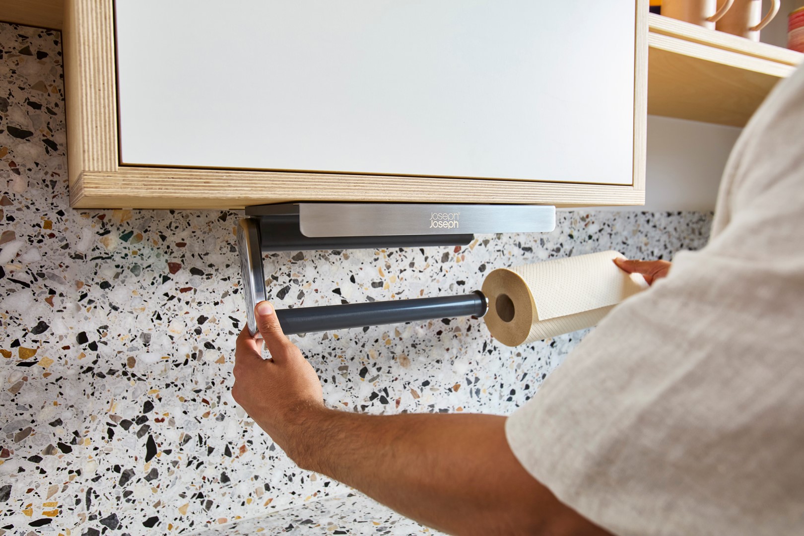 Podpółkowy uchwyt na ręcznik papierowy RollGrip Joseph Joseph: