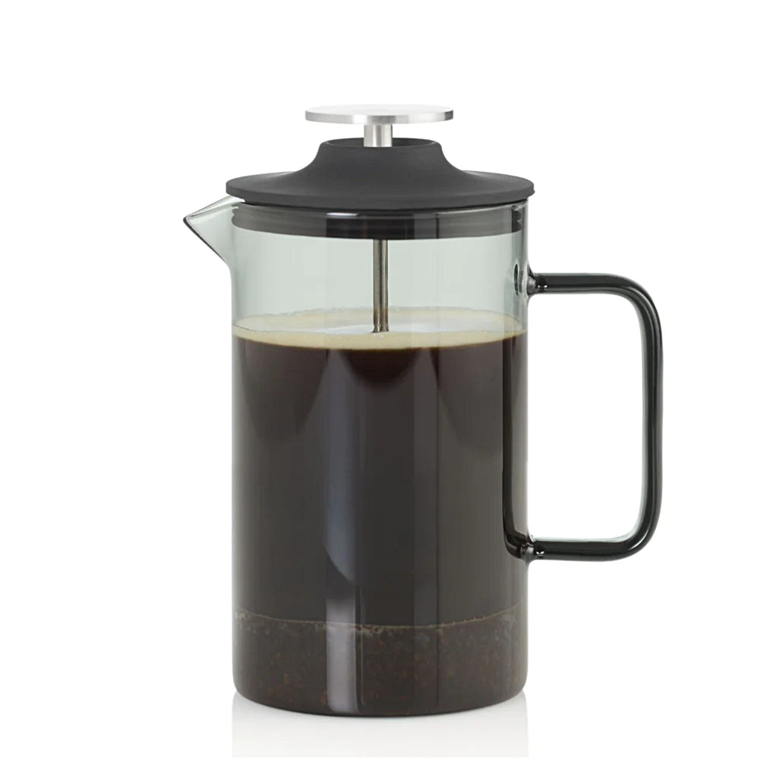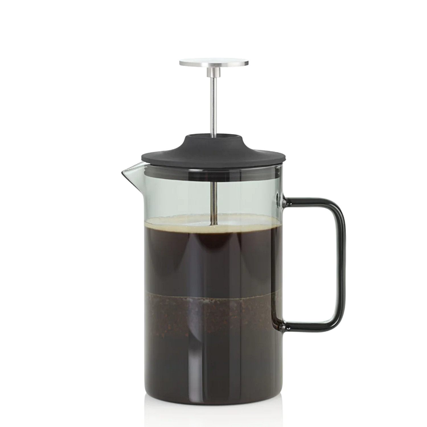 Zaparzacz tłokowy French Press Impact o pojemności około sześciuset mililitrów został zaprojektowany do tradycyjnego parzenia świeżo zmielonej kawy z zachowaniem jej aromatu. Wykonany z neutralnego, żaroodpornego, przyciemnionego szkła borokrzemianowego, gwarantuje zachowanie pełnego smaku parzonej kawy. Wysokiej jakości filtr- tłok ze stali nierdzewnej zapewnia maksymalny transfer aromatu kawy przy minimalnej ilości osadu z fusów. Dzięki technologii PreciseFlow tłok można bez wysiłku i precyzyjnie opuścić do dna. Silikonowa pokrywka SilentSeal zamyka się cicho i bezpiecznie, a przemyślana blokada zapobiega kontaktowi tłoka z dnem szklanki. Wszystkie części są łatwe do zdemontowania i nadają się do mycia w zmywarce, co ułatwia czyszczenie, jakkolwiek zleca się mycie ręczne, co pozwali uniknąć zmatowienia elementów. Produkt został zaprojektowany przez Rolanda Kreitera. UWAGI Używaj produktu zgodnie z opisem w niniejszej instrukcji, aby uniknąć przypadkowych obrażeń lub uszkodzeń. Ten produkt nie jest zabawką i nie nadaje się dla dzieci. W skład urządzenia wchodzi: 1. Tłok PreciseFlow. 2. Silikonowa pokrywka SilentSeal. 3. Korpus ze szkła borokrzemianowego. PARZENIE KAWY Użyj grubo zmielonej kawy, około 60 gramów na litr wody (lub ok. 1 czubatą łyżkę kawy na 250 ml wody). Wsyp kawę do zaparzacza French Press a następnie zalej równomiernie wodą o temperaturze około 92-96°C. Krótko zamieszaj, załóż pokrywkę, ale nie naciskaj jeszcze tłoka. Pozostaw kawę do zaparzenia na około 4 minuty. Następnie powoli i równomiernie naciśnij tłok. UWAGA Kawa jest produktem spożywczym. Smak może się różnić w zależności od indywidualnych preferencji smakowych, rodzaju kawy, stopnia zmielenia, jakości i ilości wody, temperatury parzenia lub metody przygotowania. CZYSZCZENIE I KONSERWACJA Wszystkie poszczególne części można myć w zmywarce. UTYLIZACJA Produkt i jego opakowanie zostały wykonane z materiałów, które nadają się do recyklingu. Materiał: szare szkło borokrzemowe, stal nierdzewna, silikon. Przybliżone wymiary: wysokość – 17cm, średnica – 14cm, średnica spód – 9cm, pojemność – 600ml. Przybliżone wymiary brutto: wysokość – 18cm, długość – 13,5cm, szerokość – 12cm. Przybliżona waga brutto: 0,516kg. Opakowanie: kartonowe pudełko prezentowe.