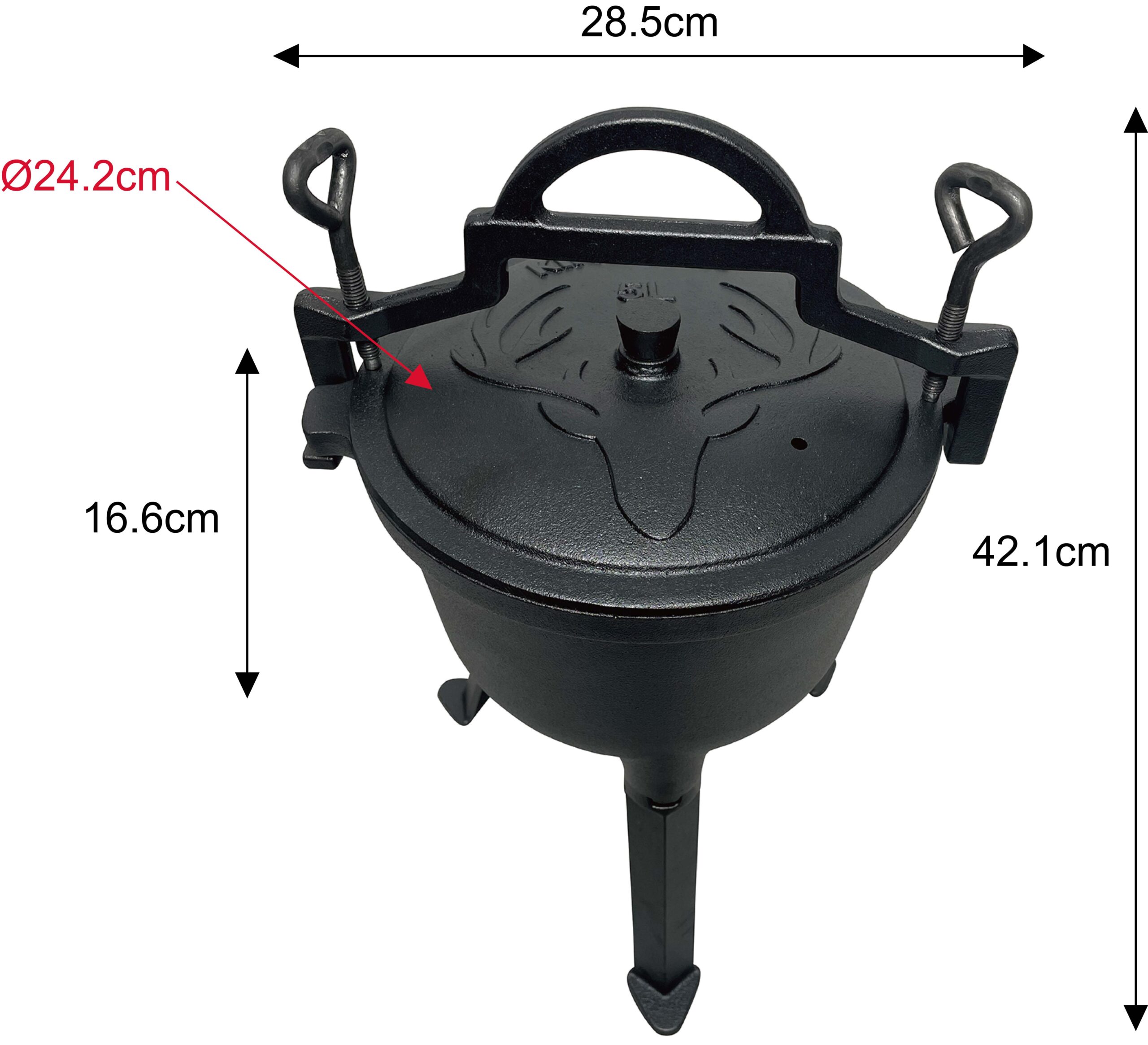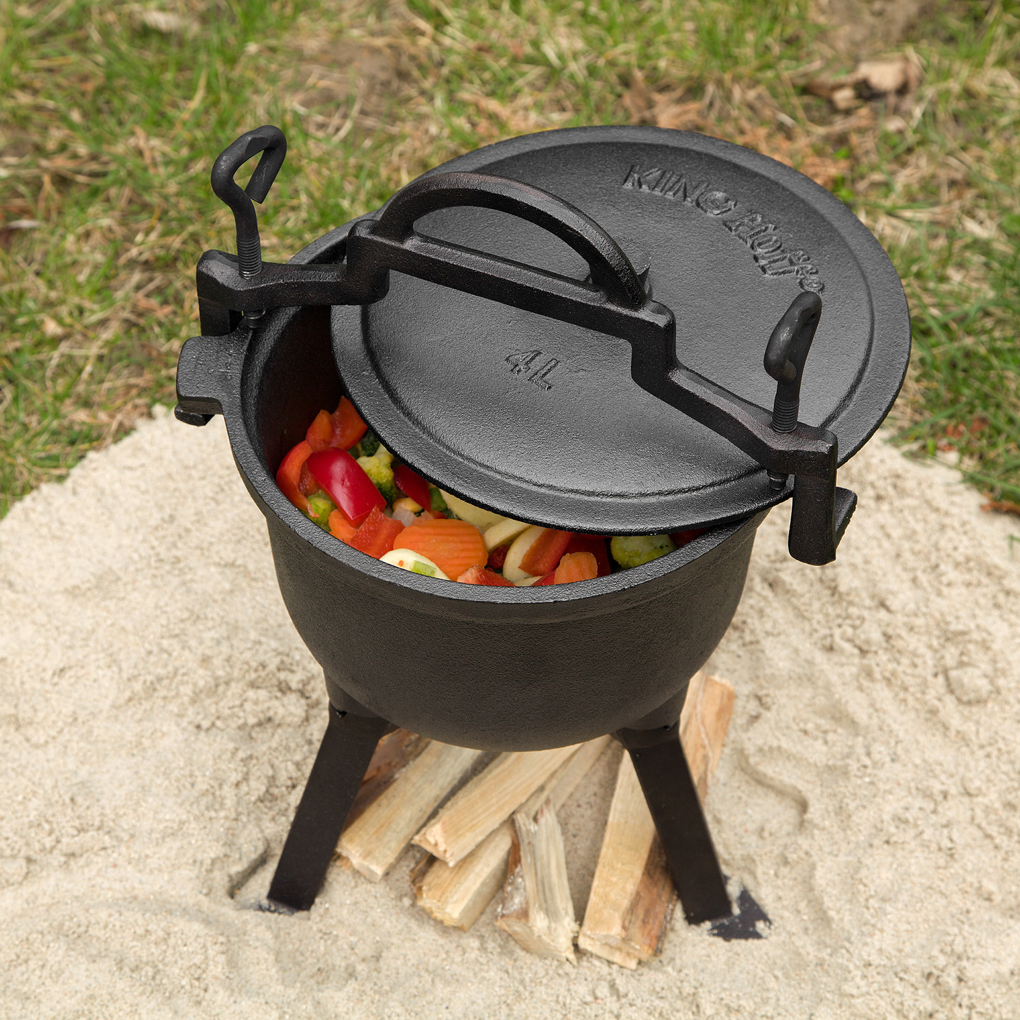 -Odkręcane nogi ułatwiają transport, a także umożliwiają powieszenie kociołka na trójnogu.