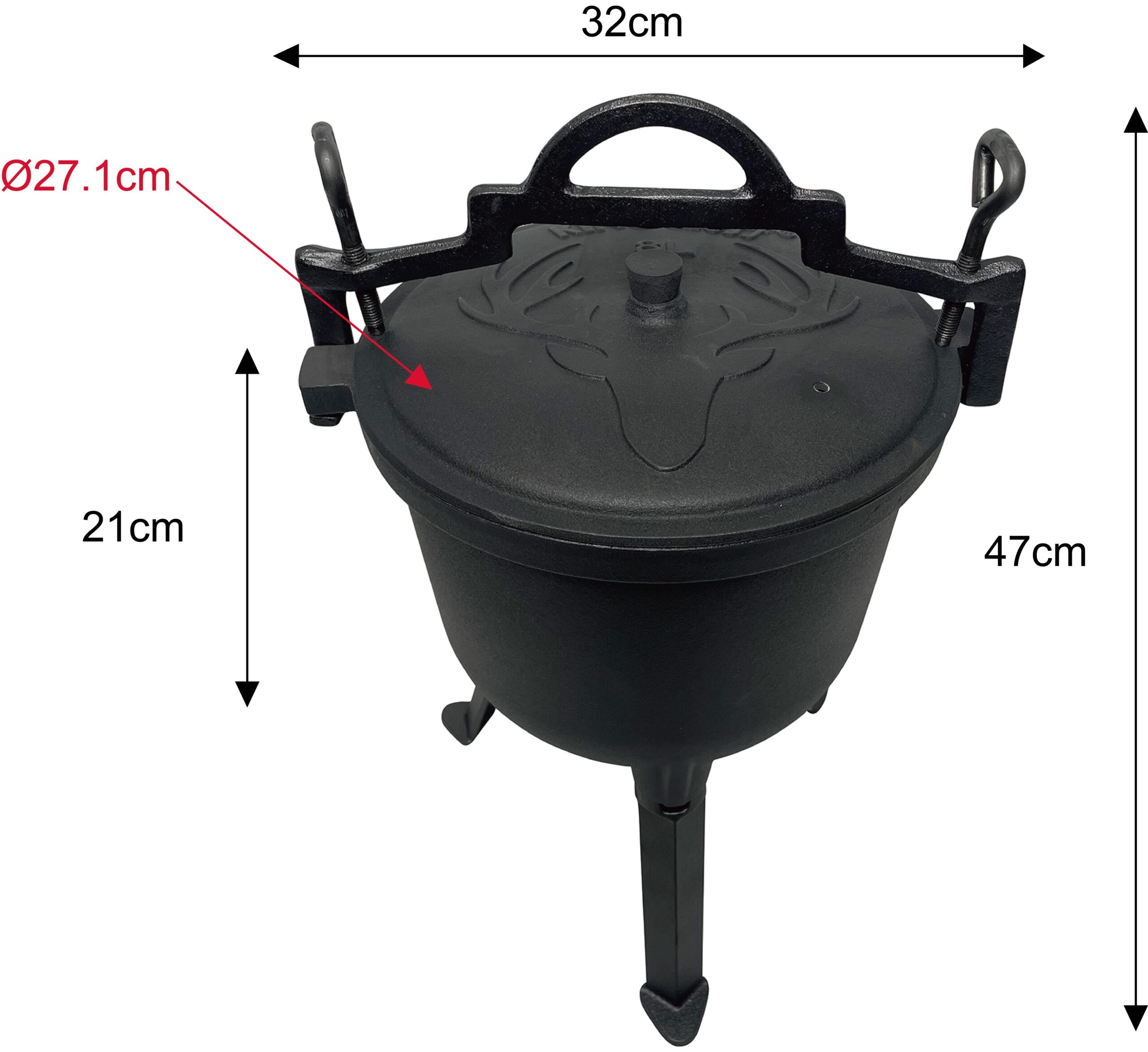 -Odkręcane nogi ułatwiają transport, a także umożliwiają powieszenie kociołka na trójnogu.