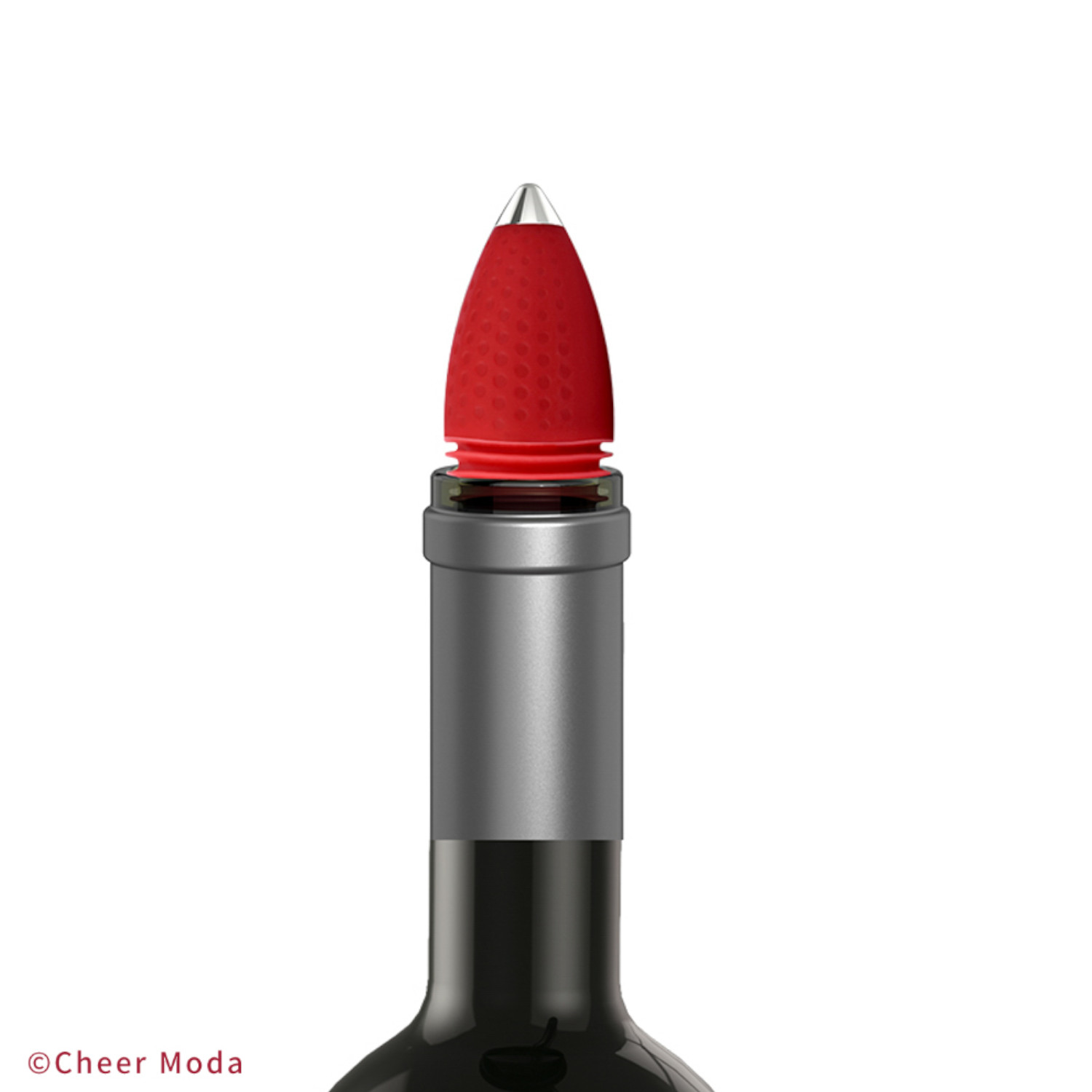 Korek zabezpieczający wino przed nadmiernym napowietrzeniem poprzez szczelne zamknięcie butelki. Jego kształt pozwala z łatwością się nim posługiwać. Materiał: ABS, stal nierdzewna. Opakowanie: kartonowe pudełko prezentowe.