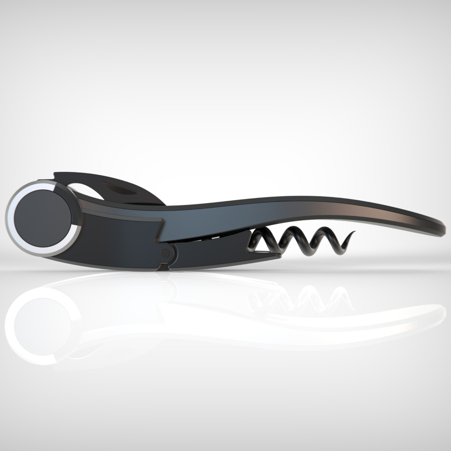 Libellule to wspaniały korkociąg o gustownym wykończeniu i wymownym wzornictwie. Oprócz spirali posiada nieduże, rozkładane ostrze służące do odcinania folii, wyprofilowane dodatkowo w kształt otwieracza do butelek, co nadaje mu podwójną funkcję. System double lever stwarza pionowe prowadzenie korka o wiele łatwiejszym, co zdecydowanie redukuje naprężenia w korku, a tym samym niemalże całkowicie ogranicza ryzyko załamania go. Szeroki uchwyt wieńczy dzieło, zapewniając dużą powierzchnię podparcia dla ręki, co skutkuje w o wiele lepszym chwycie i odczuwalnie wyższym komforcie użytkowania. Materiał: stopy cynku i aluminium. Opakowanie: kartonowe pudełko prezentowe.