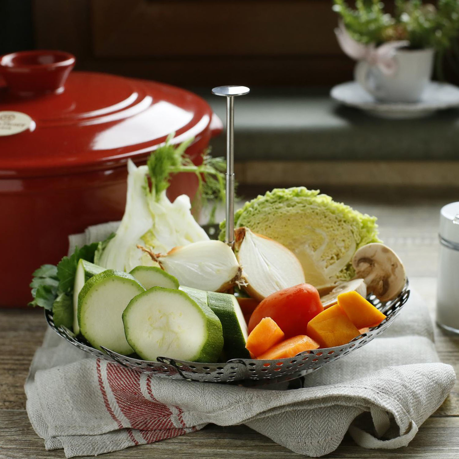 Łatwy do złożenia, wysokiej jakości koszyk ze stali nierdzewnej do gotowania na parze. Może być używany w garnkach o średnicy 14cm. Koszyk wyposażono w teleskopowy uchwyt do wkładania i wyjmowania go z garnka w łatwy sposób. Dzięki możliwości odłączenia uchwytu od koszyka, produkt nie zajmie w szafce zbyt wiele miejsca. Koszyk jest idealnym rozwiązaniem dla osób, które chcą gotować zdrowe posiłki bez użycia nadmiernych ilości tłuszczu. Świetnia sprawdzi się w przyrządzaniu warzyw, ziemniaków czy ryb. Należy pamiętać, że koszyk jest przeznaczony do garnków o minimalnej średnicy 14cm. Można myć w zmywarce. Produkt może nosić ślady produkcyjne, które w żaden sposób nie wpływają na jego walory użytkowe. Materiał: stal nierdzewna. Wymiary brutto: 19x15x6cm. Wymiary netto: 14,2×14,2×7,5cm. Waga brutto: 0,175kg. Waga netto: 0,166kg.