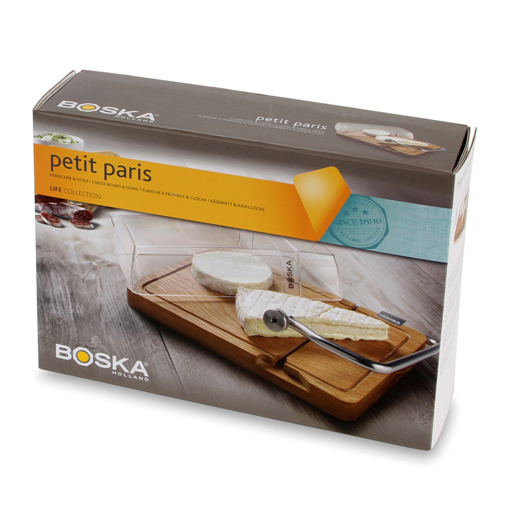Do zestawu dołączono również plastikowy, nakładany klosz dopasowany do deski, przykrycie sera zapobiega wysychaniu i pomaga w przechowywaniu.