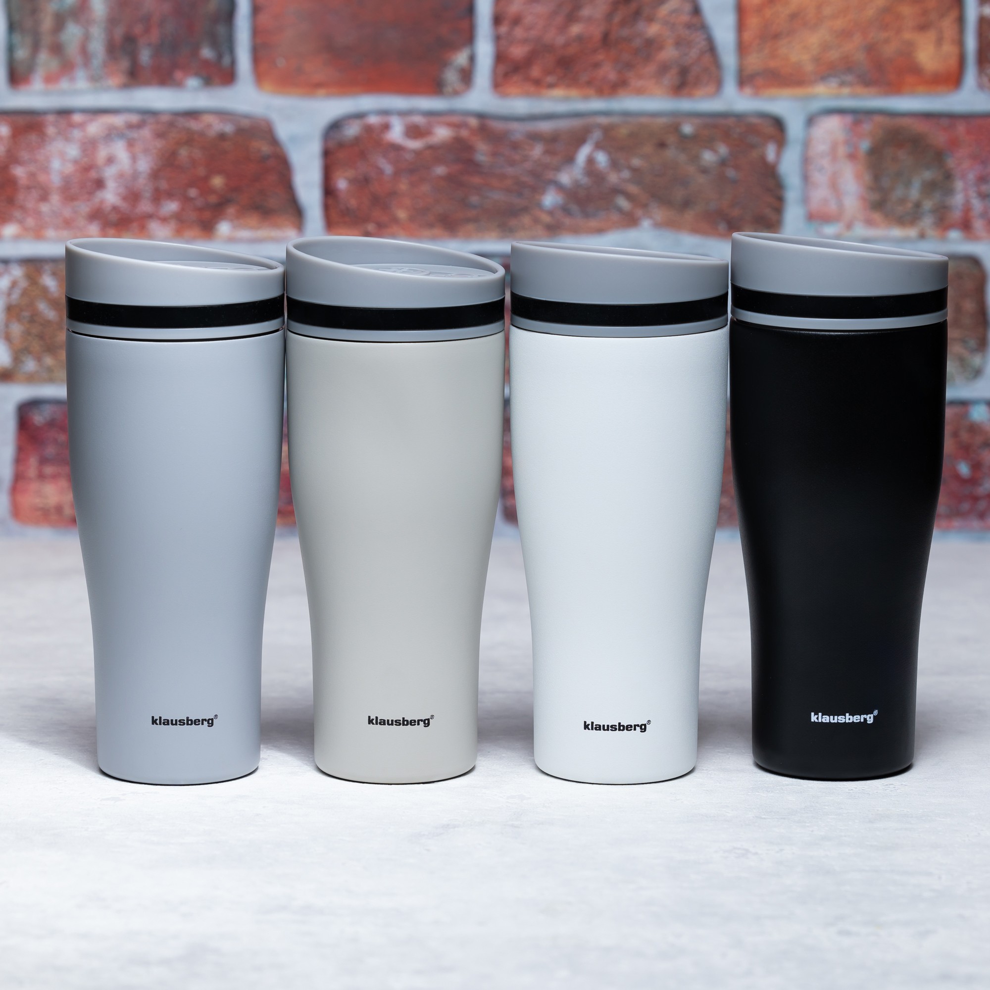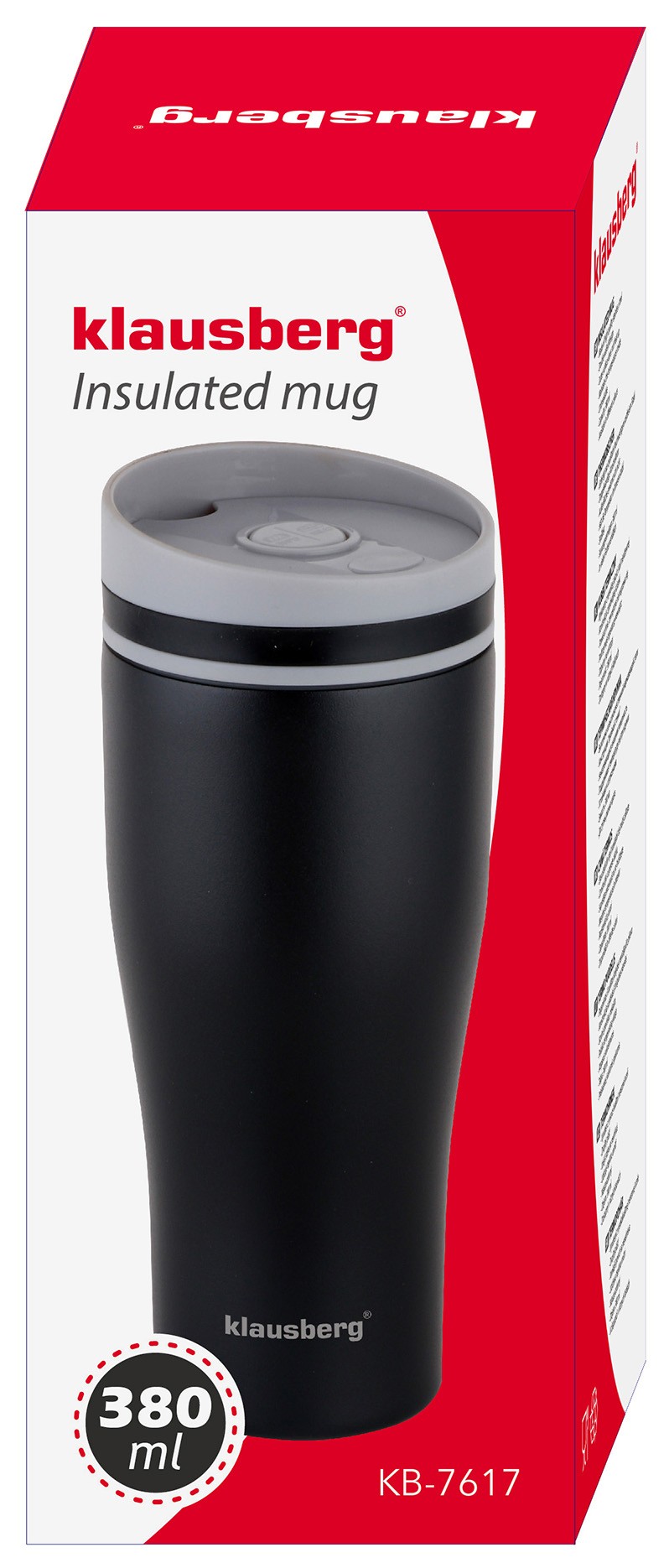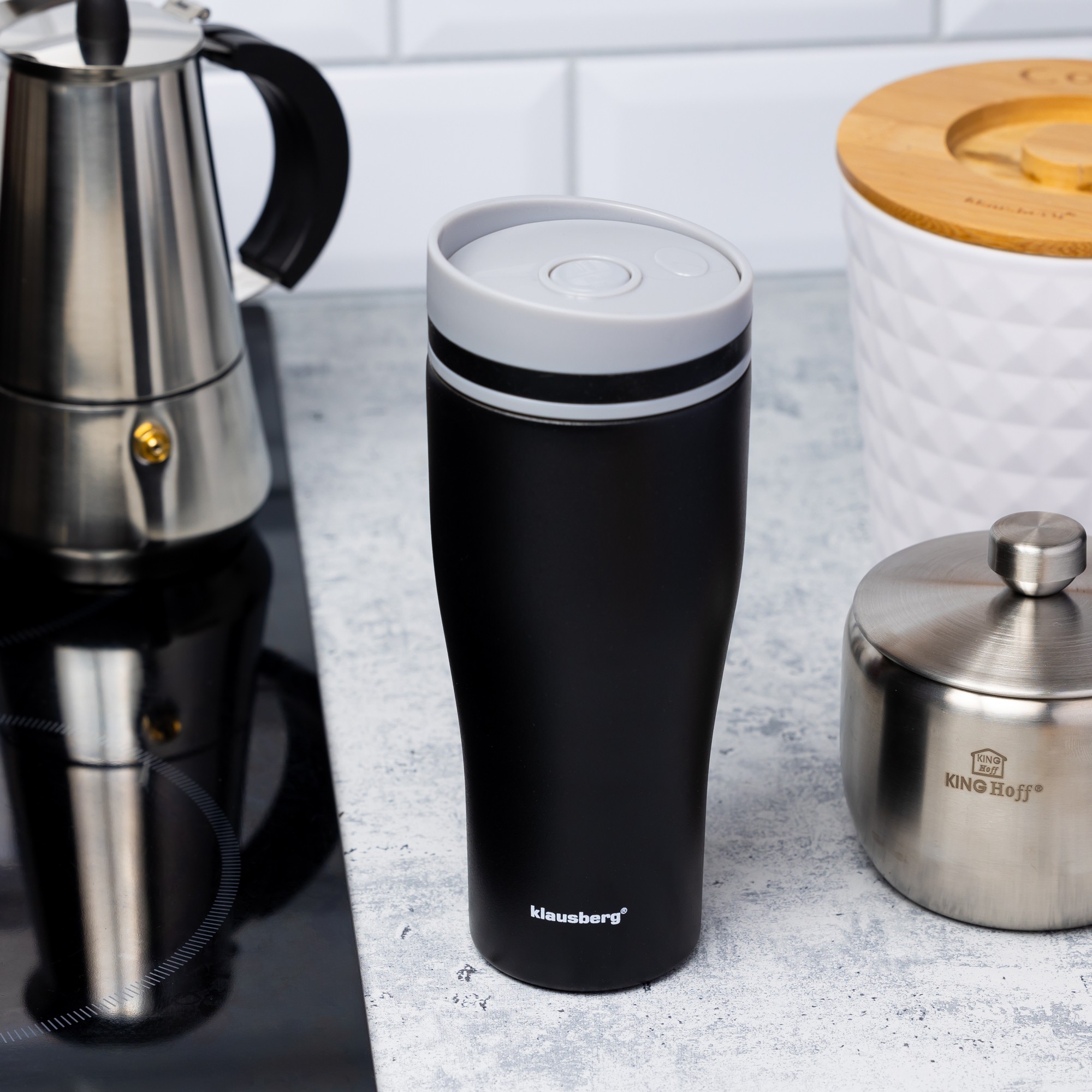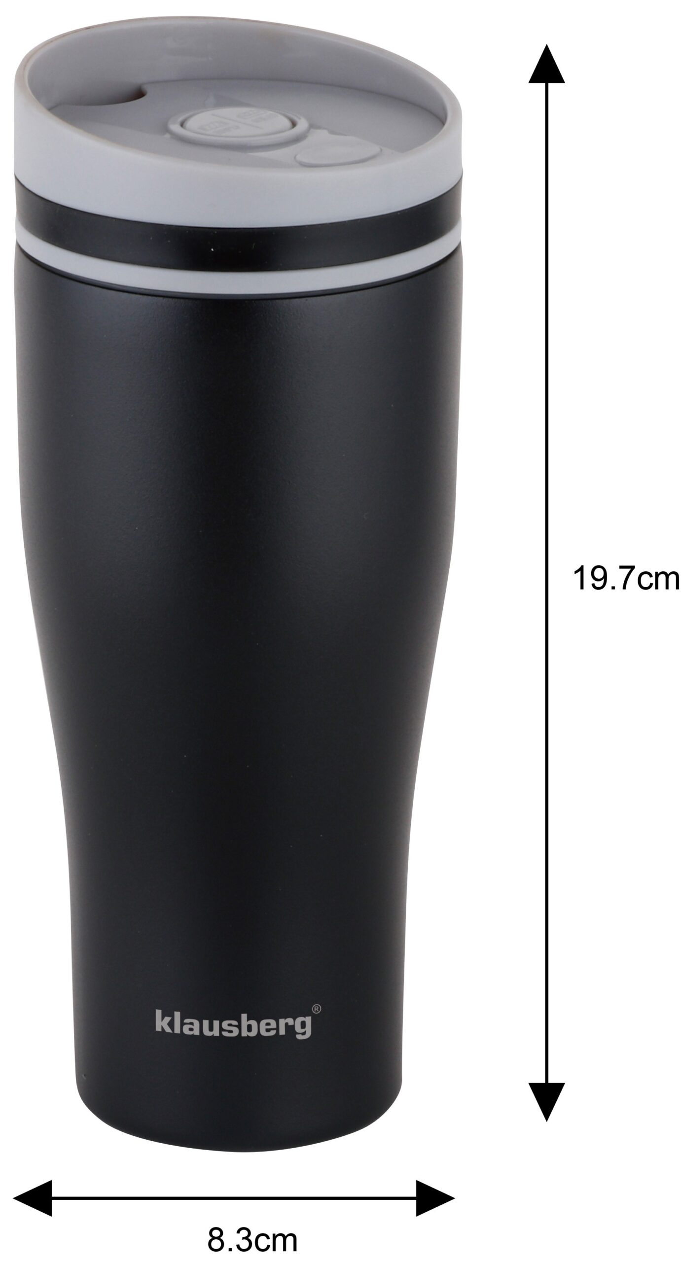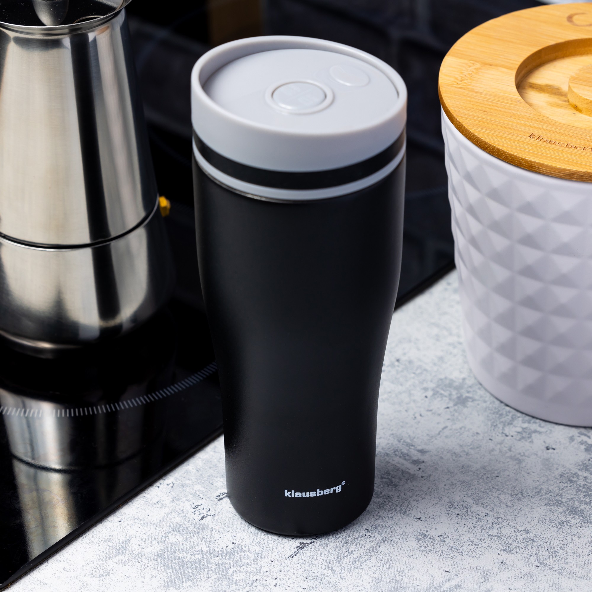 Czarny kubek termiczny Klausberg to kwintesencja nowoczesnego stylu połączonego z niezawodną funkcjonalnością. Głęboka czerń z subtelnym akcentem szarości przy górnej krawędzi nadaje mu wyjątkowego charakteru i elegancji, która sprawdzi się zarówno w pracy, jak i podczas relaksu.