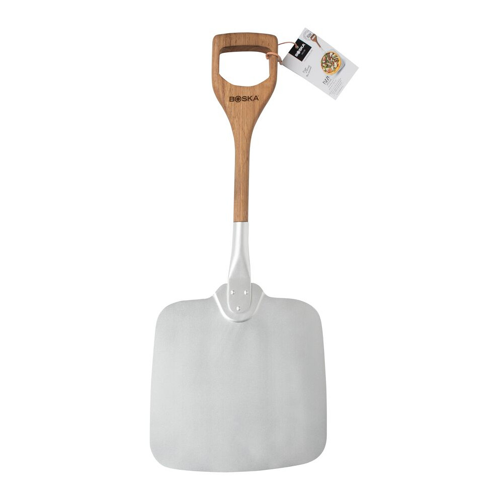 Dzięki tej poręcznej łopacie bezpiecznie wyciągniesz pizzę, chleb z gorącego piekarnika lub pieca. Narzędzie do pizzy wykonane zostało dobrej jakości aluminium , a rączka z drewna dębu. Szeroki uchwyt zapewnia stabilny chwyt. Kiedy łopaty nie używasz, możesz zwiesić ją w kuchni, za uchwyt lub na skórzanym sznurku. Łopata sprawdzi się do pizzy o średnicy 30 cm. Buon Appetito! Uwaga: Łopatę do pizzy należy najpierw posypać cienką warstwą mąki. Dzięki temu pizza łatwo i gładko zsunie się.