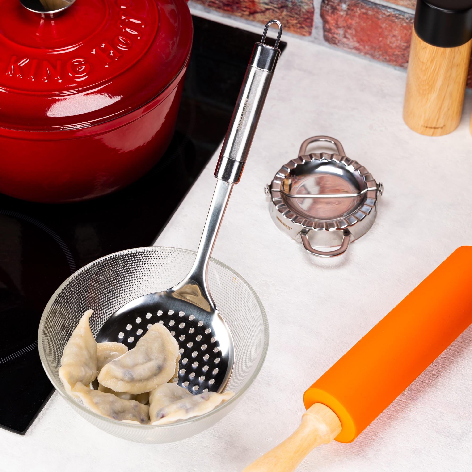 Wybierając Kinghoff, zyskujesz szeroki wybór praktycznych naczyń i akcesoriów kuchennych, które ułatwiają przygotowywanie posiłków, pomagają utrzymać porządek na blacie i podkreślają charakter Twojej kuchni.