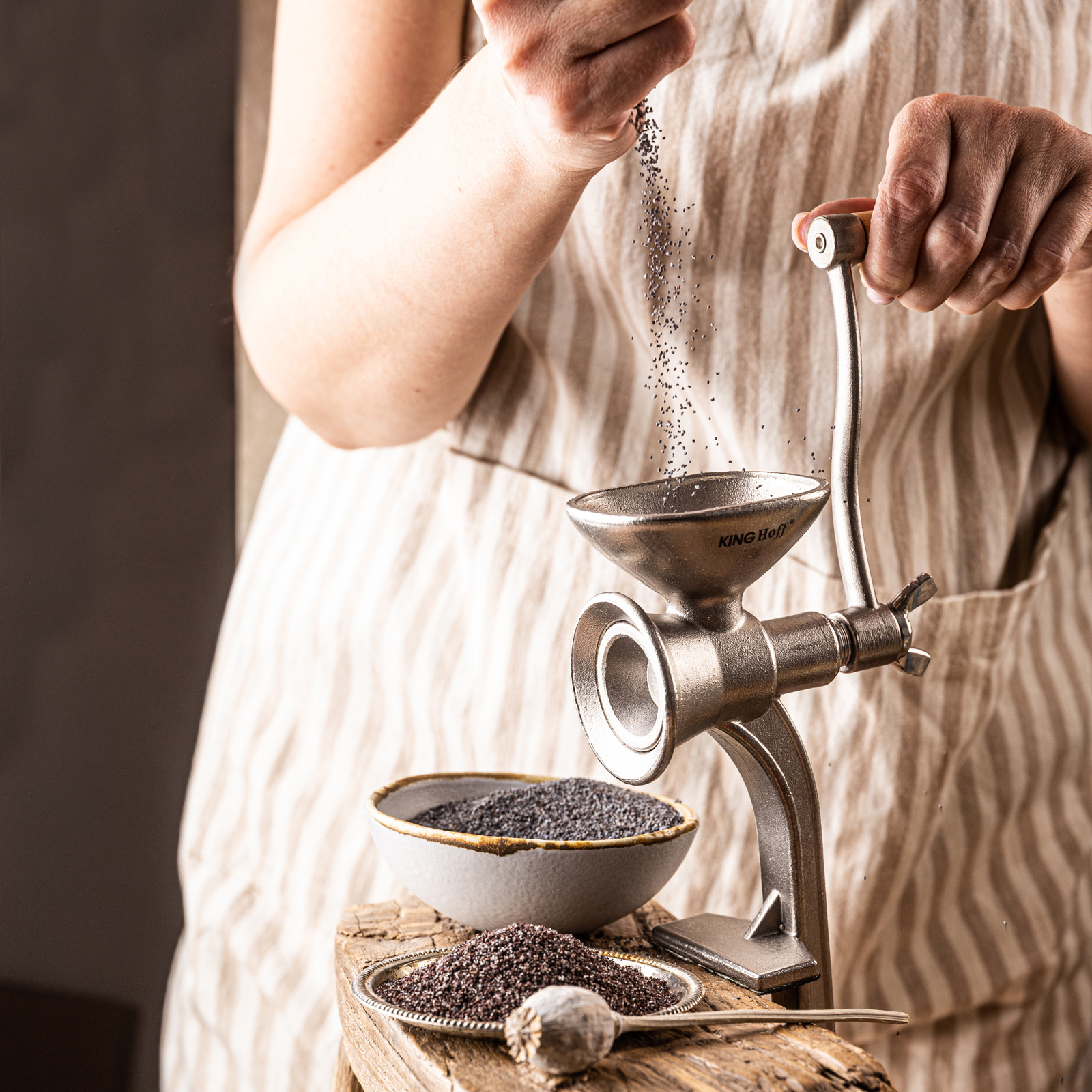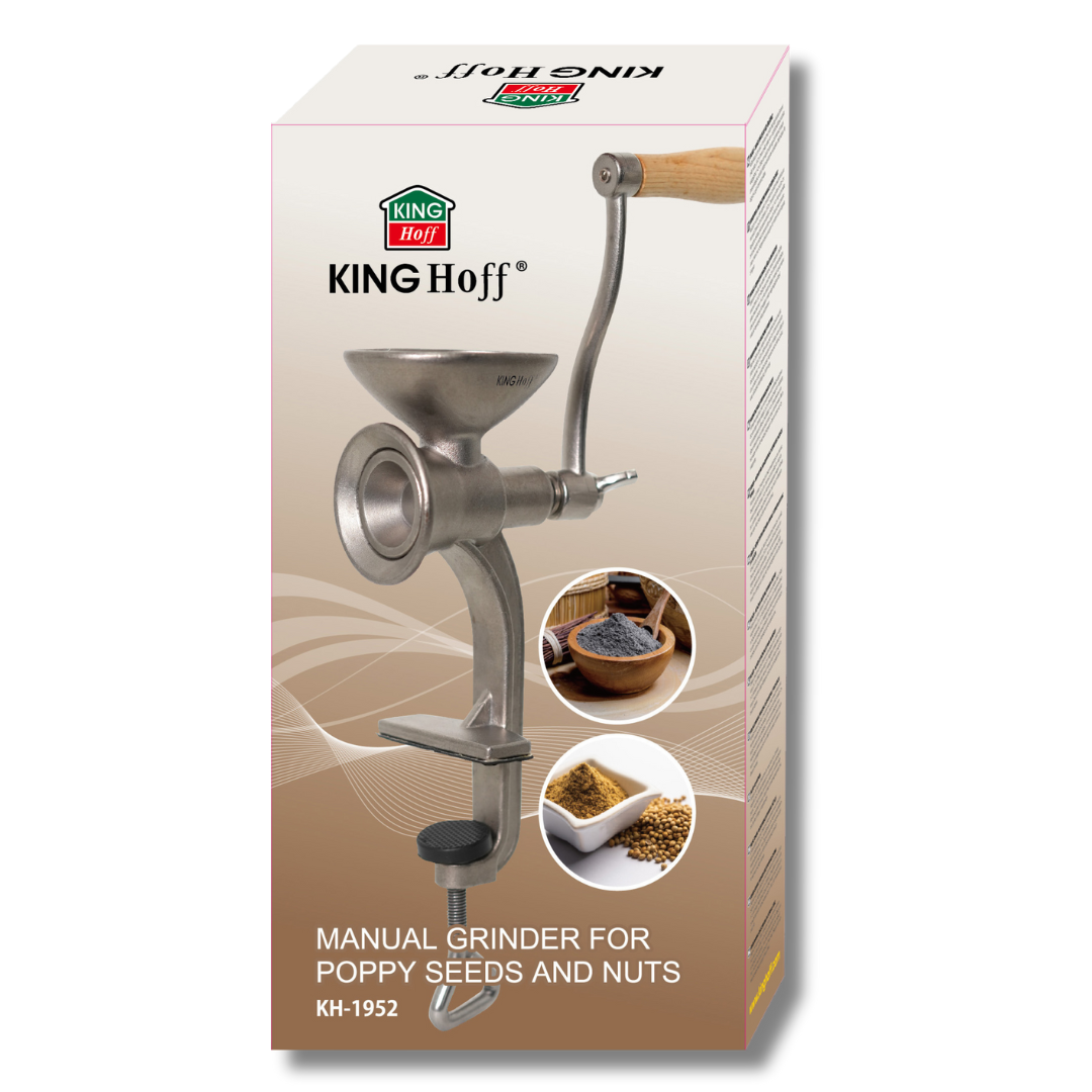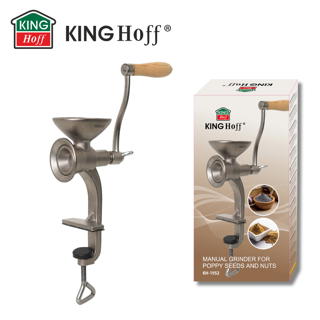 Ręczna maszynka do mielenia maku, orzechów, ziaren, przypraw i innych drobnych składników KINGHoff KH-1952 to klasyczne, solidne i niezawodne narzędzie kuchenne, które ułatwia przygotowywanie składników do ciast, deserów, farszów i wielu innych potraw. Wykonana z wysokiej jakości stali nierdzewnej 304, zapewnia wyjątkową odporność na korozję i trwałość, a tradycyjna konstrukcja z korbką i drewnianym uchwytem sprawia, że obsługa jest prosta i komfortowa. To idealny wybór dla osób, które cenią domowe metody mielenia.