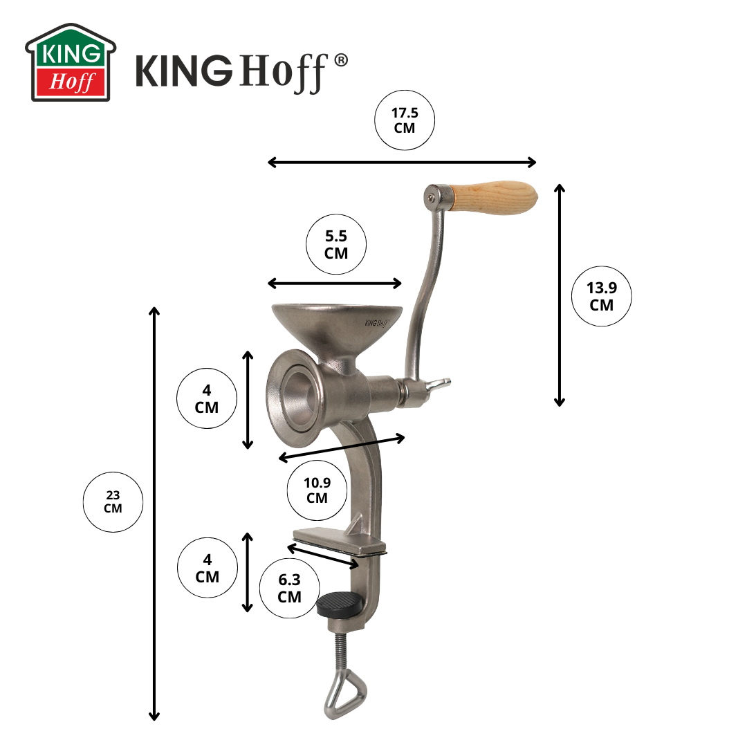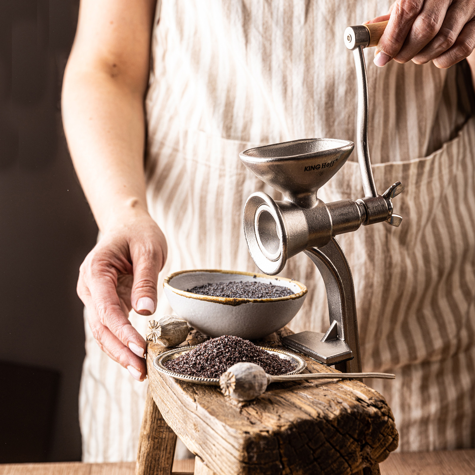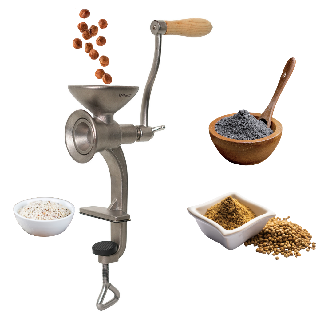 Ręczna maszynka do mielenia maku, orzechów, ziaren, przypraw i innych drobnych składników KINGHoff KH-1952 to klasyczne, solidne i niezawodne narzędzie kuchenne, które ułatwia przygotowywanie składników do ciast, deserów, farszów i wielu innych potraw. Wykonana z wysokiej jakości stali nierdzewnej 304, zapewnia wyjątkową odporność na korozję i trwałość, a tradycyjna konstrukcja z korbką i drewnianym uchwytem sprawia, że obsługa jest prosta i komfortowa. To idealny wybór dla osób, które cenią domowe metody mielenia.
