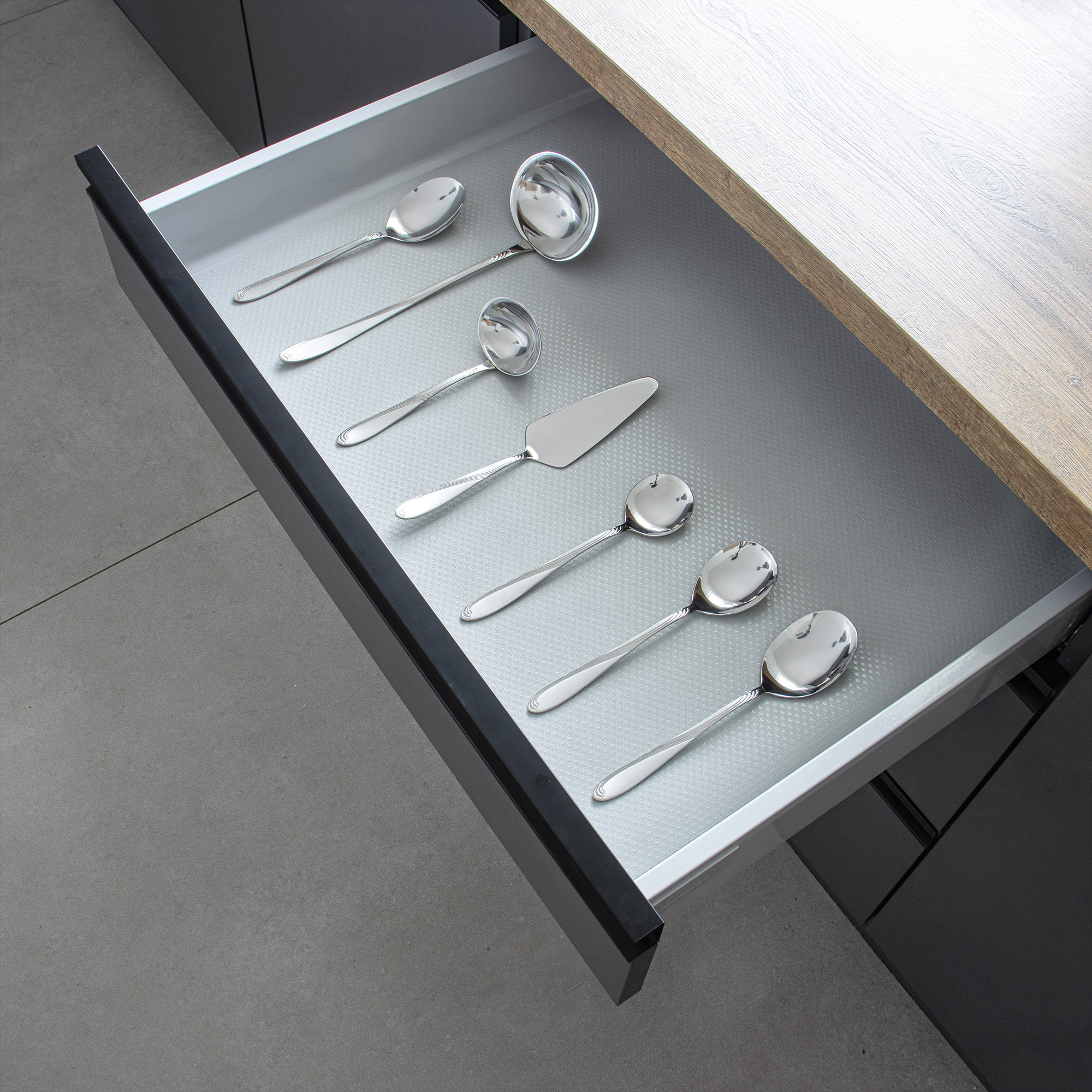 Przezroczysta mata antypoślizgowa o wymiarach 50 × 300 cm to praktyczne i estetyczne rozwiązanie do ochrony półek, szuflad, blatów czy innych powierzchni w domu. Dzięki neutralnemu wyglądowi dyskretnie wtapia się w tło, jednocześnie skutecznie zapobiegając przesuwaniu się przedmiotów i chroniąc powierzchnie przed zabrudzeniami i zarysowaniami. Doskonały wybór do kuchni, łazienki, garderoby lub biura.