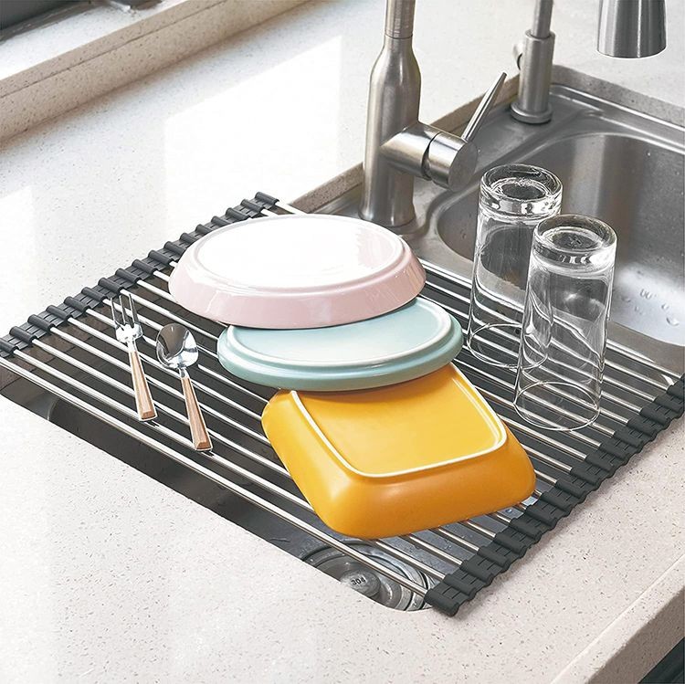 Szukasz funkcjonalnego i estetycznego sposobu na suszenie naczyń bez bałaganu na blacie? Mata do suszenia naczyń KINGHoff KH-1903 łączy trwałość stali nierdzewnej z antypoślizgowym wykończeniem silikonowym, zapewniając maksymalną wygodę i oszczędność miejsca.