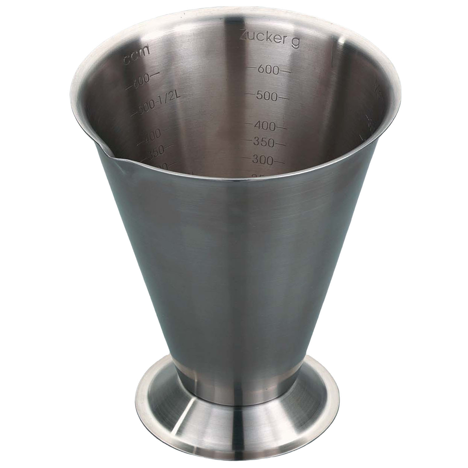 Miarka ze stali nierdzewnej o pojemności 750 mililitrów. Na wewnętrznej stronie zostały naniesione jednostki miary dla kakao, cukru, wody, maki, ryżu i rodzynek. Można myć w zmywarce.