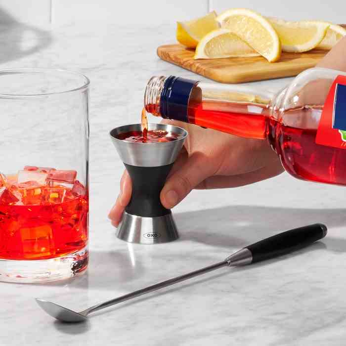 Podwójna miarka barmańska/jigger do koktajli i drinków marki OXO,