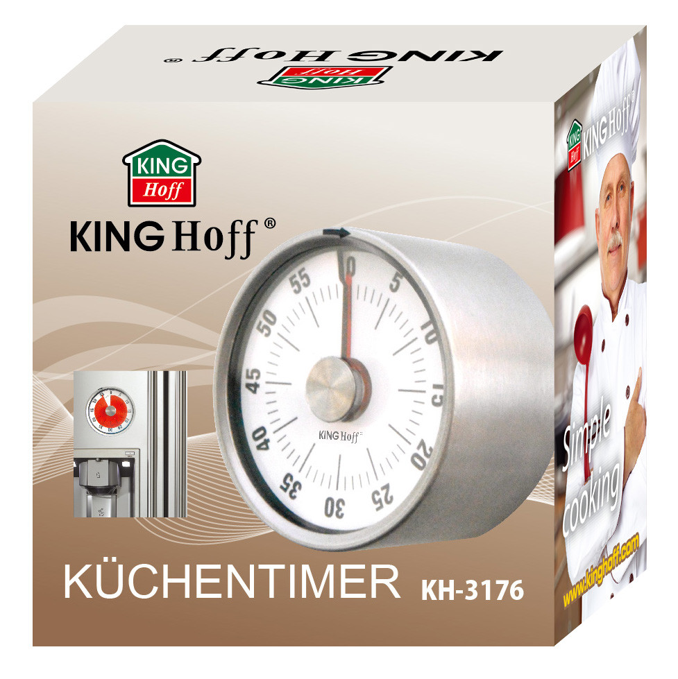 Stylowy i funkcjonalny minutnik kuchenny Kinghoff to niezastąpiona pomoc podczas gotowania, pieczenia i innych codziennych czynności. Mechaniczny system działania nie wymaga baterii, a wbudowany magnes pozwala wygodnie przymocować urządzenie do metalowych powierzchni – np. lodówki, piekarnika lub okapu.