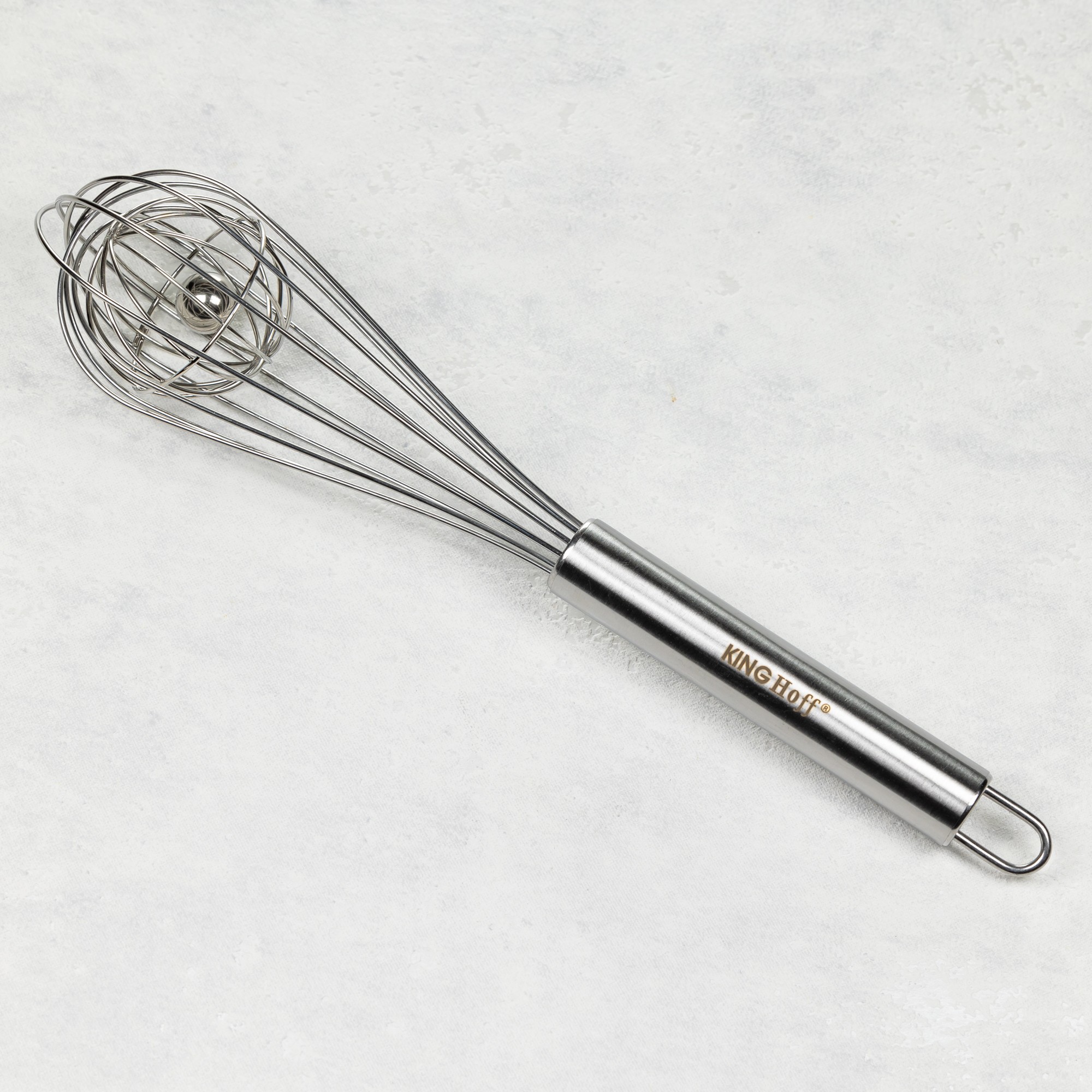 Wbudowana wewnątrz stalowa kulka przyspiesza mieszanie i ubijanie, zwiększając efektywność pracy. Ergonomiczny kształt i idealna długość (26 cm) sprawiają, że trzepaczka świetnie leży w dłoni i pasuje do większości misek i naczyń kuchennych.
