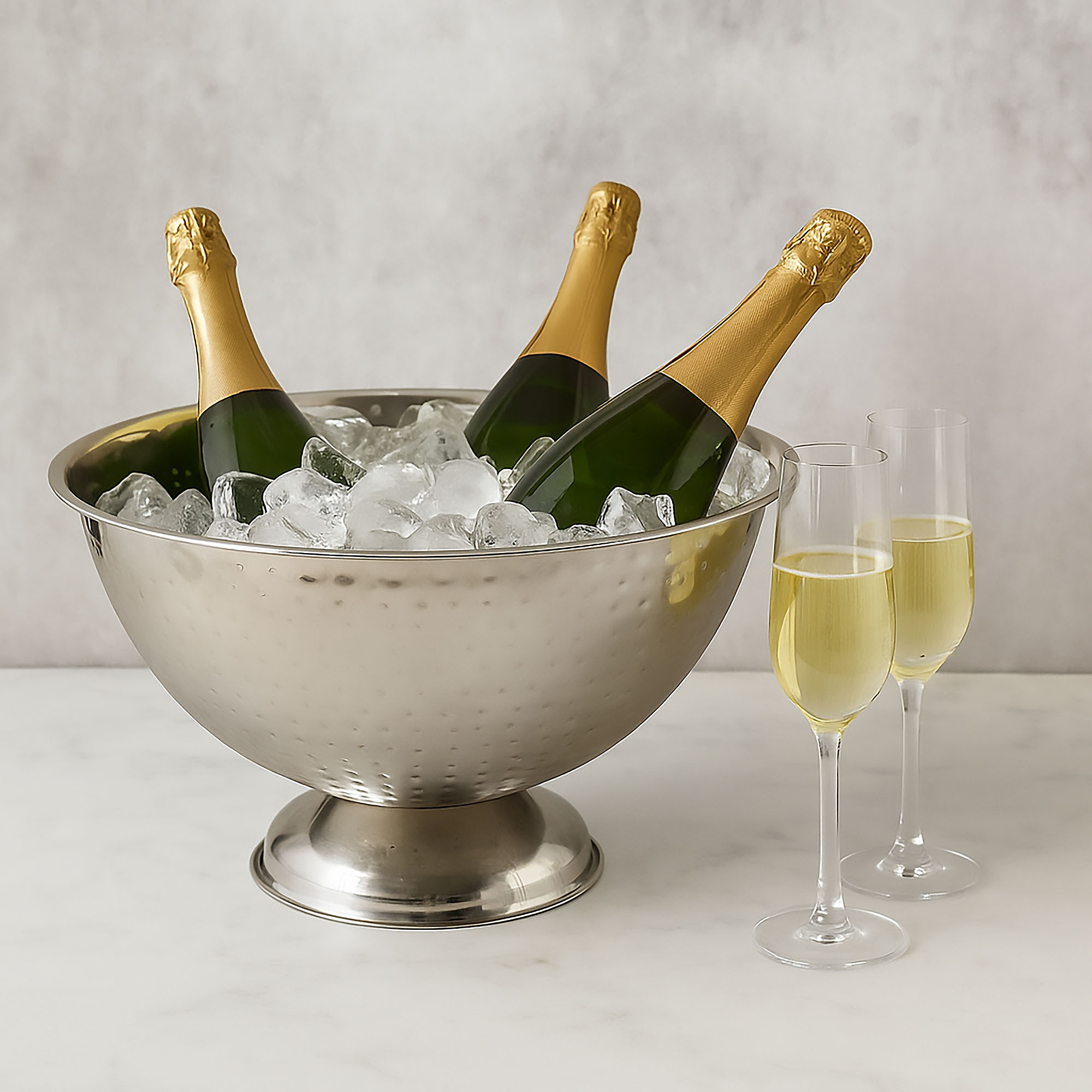 Szukasz stylowego dodatku, który nie tylko przyciągnie wzrok, ale też spełni praktyczne funkcje podczas imprez? Misa do chłodzenia szampana i innych napojów sprawdzi się doskonale na każdej uroczystości – od domowego przyjęcia po eleganckie wesele. Wykonana z wysokiej jakości stali nierdzewnej, zachwyca nie tylko trwałością, ale i efektownym wykończeniem z młotkowaną fakturą.