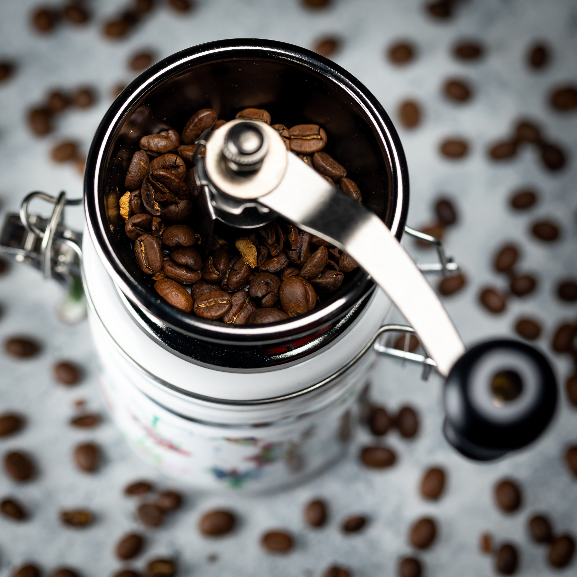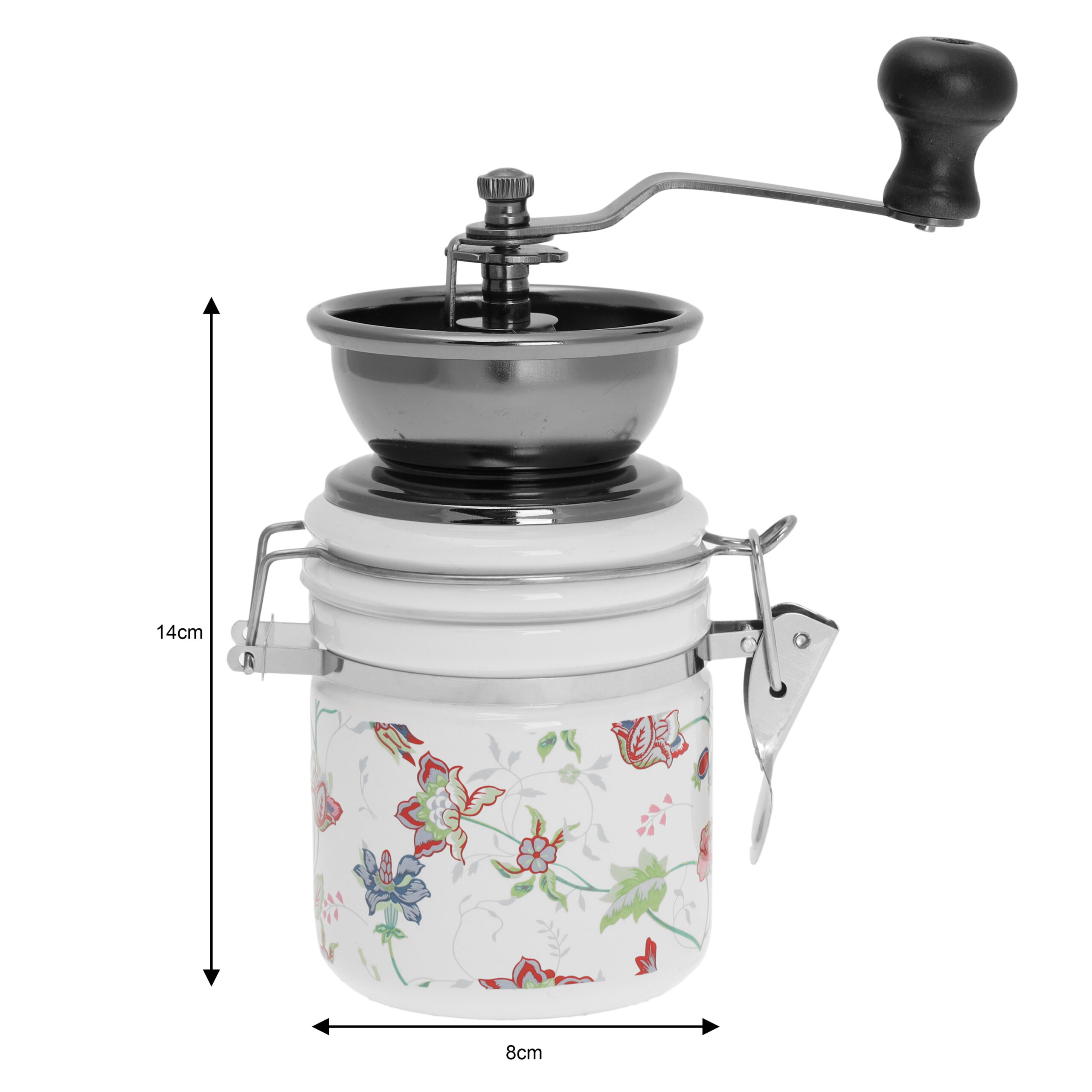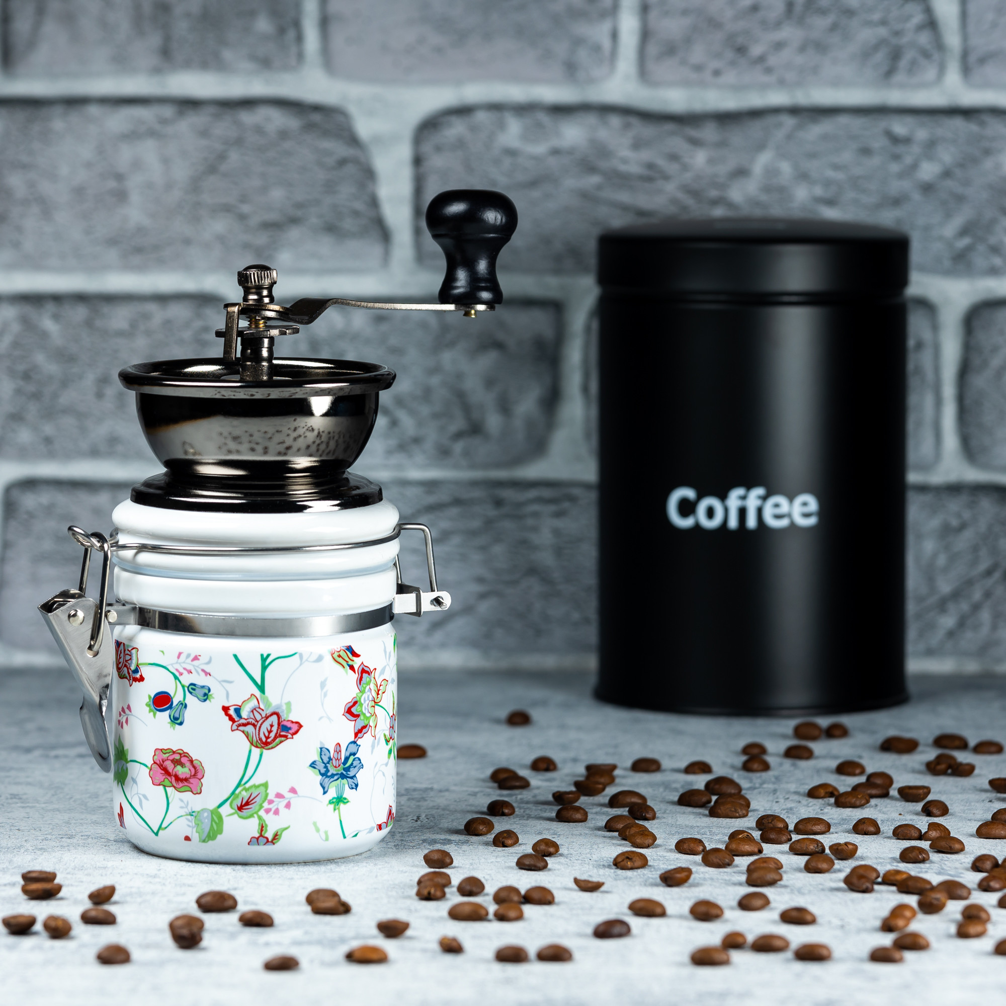 Młynek do mielenia kawy charakteryzuje się pięknym kwiatowym wzorem.