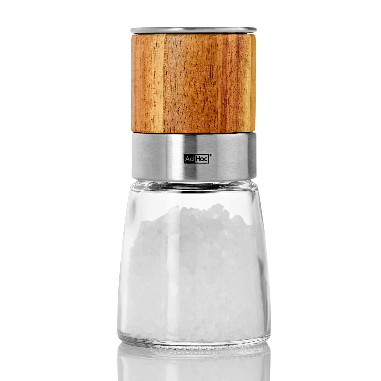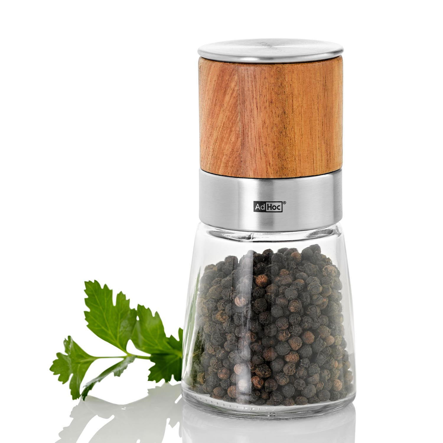 Młynek posiada bardzo wydajne w pełni regulowane żarna CeraCut®, które są wolne od zapachów i smaków, a także są niezwykle odporne na zużycie i korozję. Młynek jest zaprojektowany w taki sposób aby przechowywać go z żarnami skierowanymi ku górze, co zapewnia czystość blatu. Dodatkowo posiada specjalną zaślepkę zakrywającą żarna i chroniącą przyprawy. Natomiast zastosowane drewno akacjowe zapewnia wygodne i bezpieczne użytkowanie młynka. Cechą charakterystyczną jest duży szklany pojemnik na przyprawy. Nie należy myć w zmywarce. Produkt został zaprojektowany przez AdHoc Design Team. Materiał: drewno akacjowe, stal nierdzewna, szkło. Wymiary: średnica – 6,5cm, wysokość – 13,5cm.
