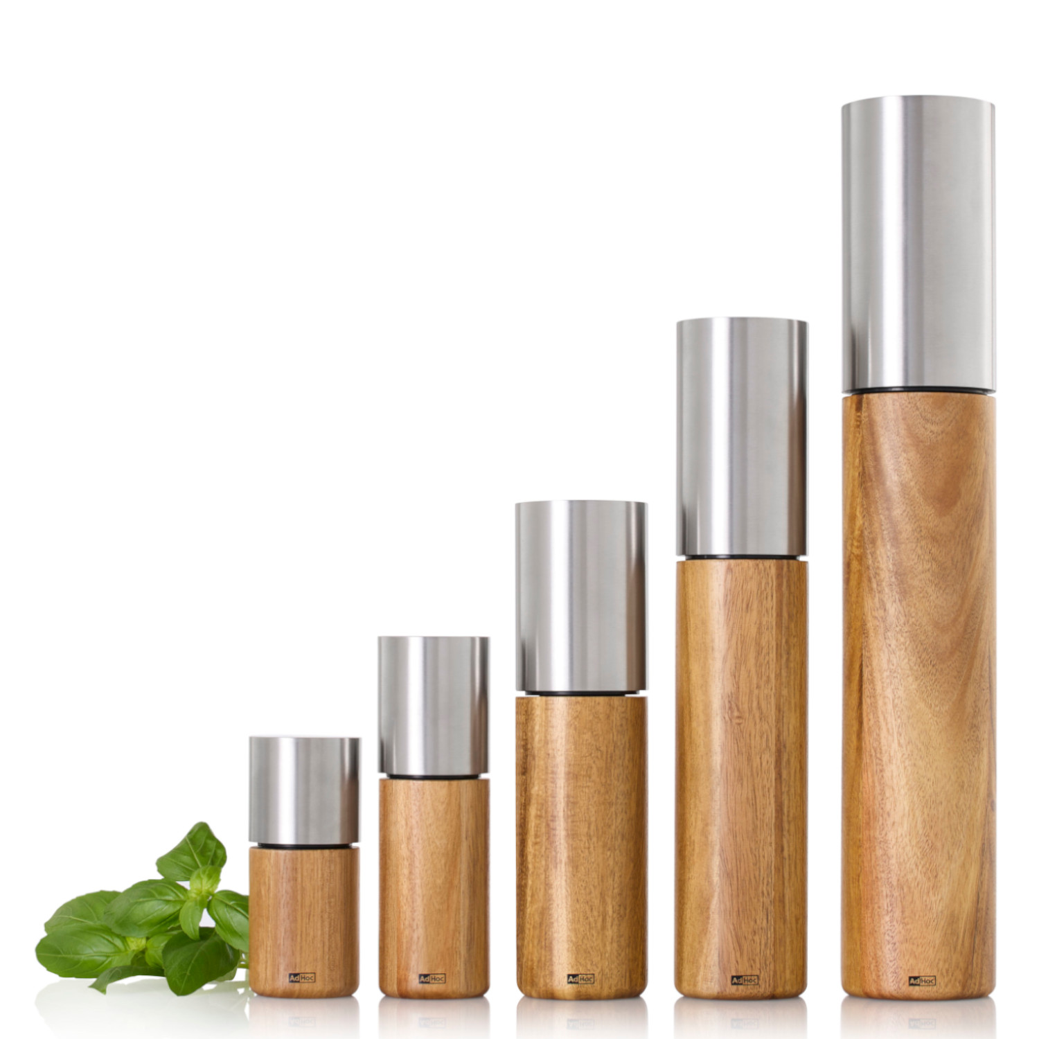 Nie podnoś młynka za górną część zakładaną na wcisk, element może się zsunąć a przyprawy rozsypać. Młynek należy czyścić wilgotną, miękka ściereczką. Nigdy nie należy młynka zanurzać w wodzie. Żarna można oczyścić delikatnie szczoteczką. Nie należy myć w zmywarce. Materiał: drewno akacjowe, stal nierdzewna. Opakowanie: kartonowe pudełko prezentowe.