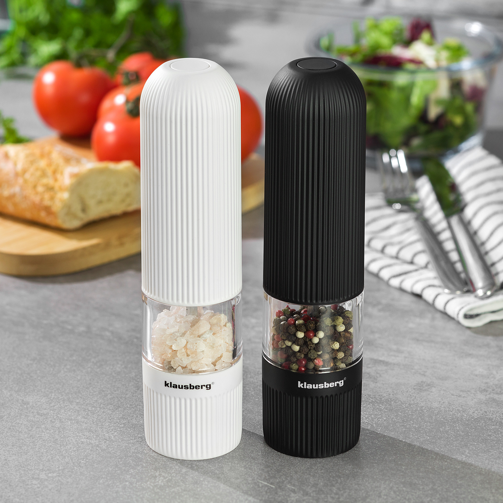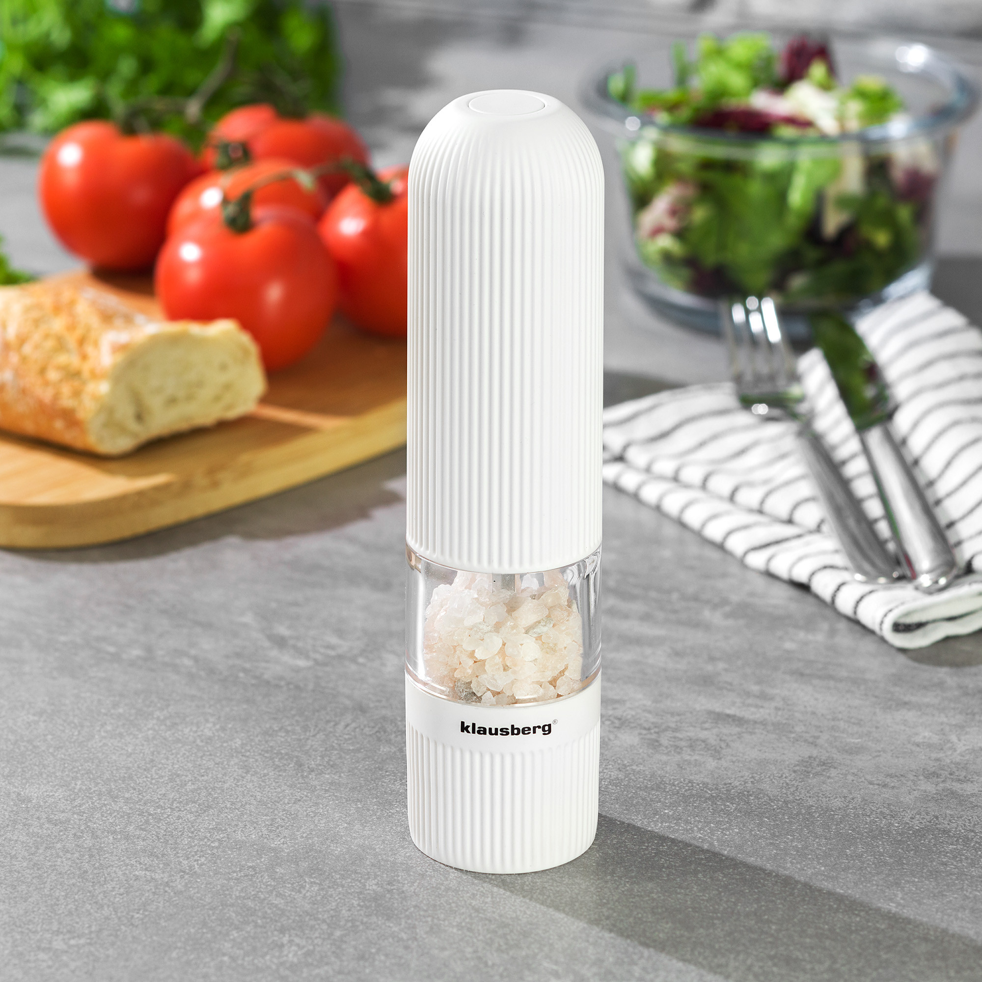 Młynek do soli lub pieprzu z ceramicznym mechanizmem mielącym. Transparentne okienko zapewnia widoczność przypraw. Wyposażony w system podświetlający potrawy.