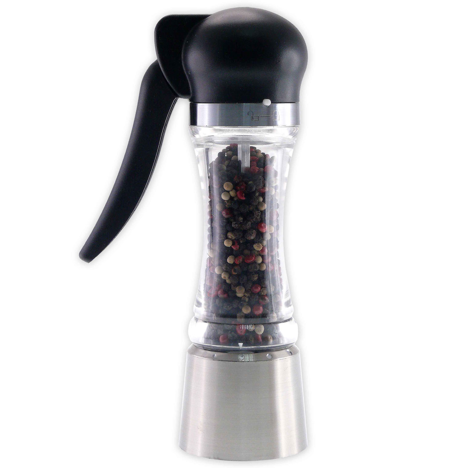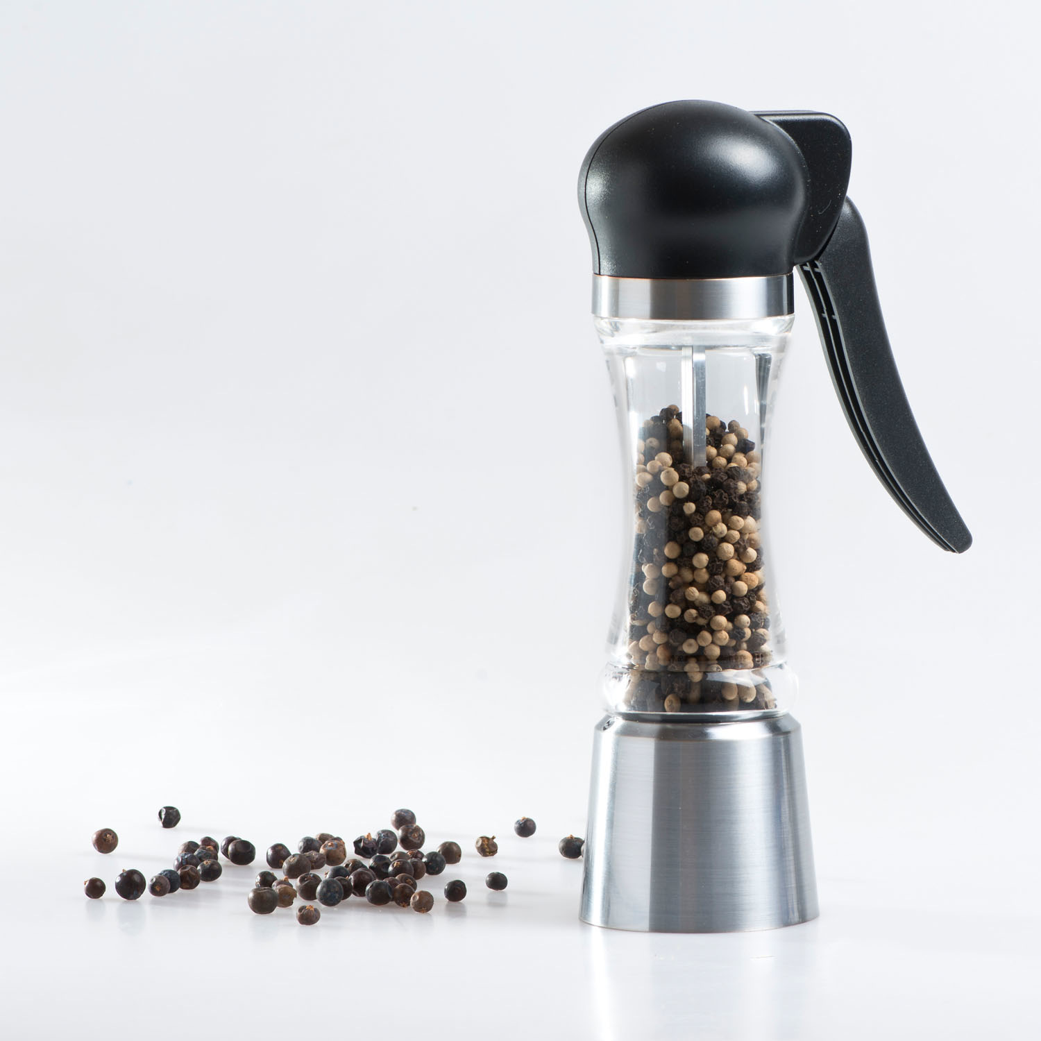 Dzięki jednoręcznej obsłudze jedna ręka pozostaje wolna, co usprawnia pracę w kuchni. Zbiornik na przyprawy został wykonany z akrylu, a żarna są ceramiczne. Młynek został wyposażony w mechanizm regulacji grubości mielenia, którą dopasowuje się poprzez obracanie dolnym pierścieniem. Dodatkowo młynek jest wypełniony kolorowym pieprzem. Zalecane jest mycie ręczne.