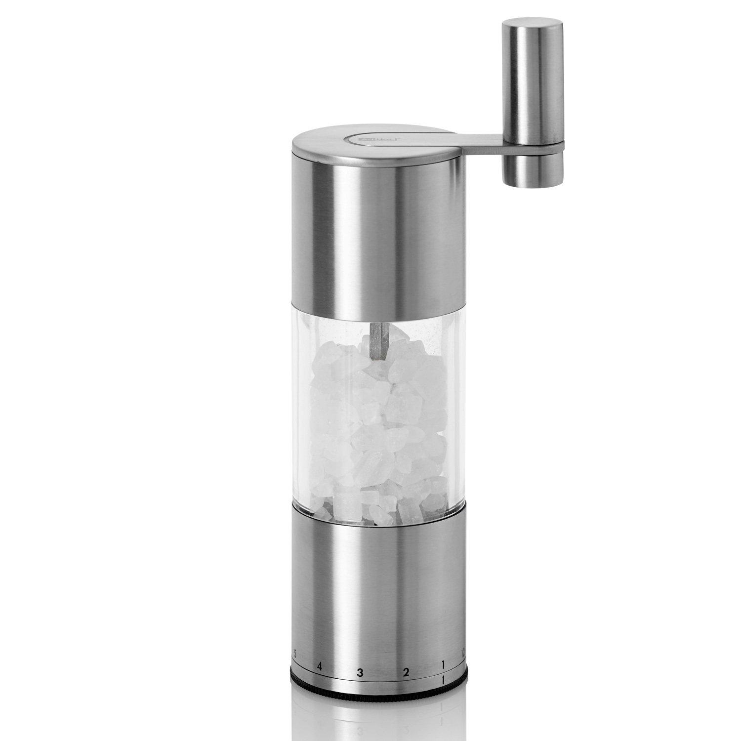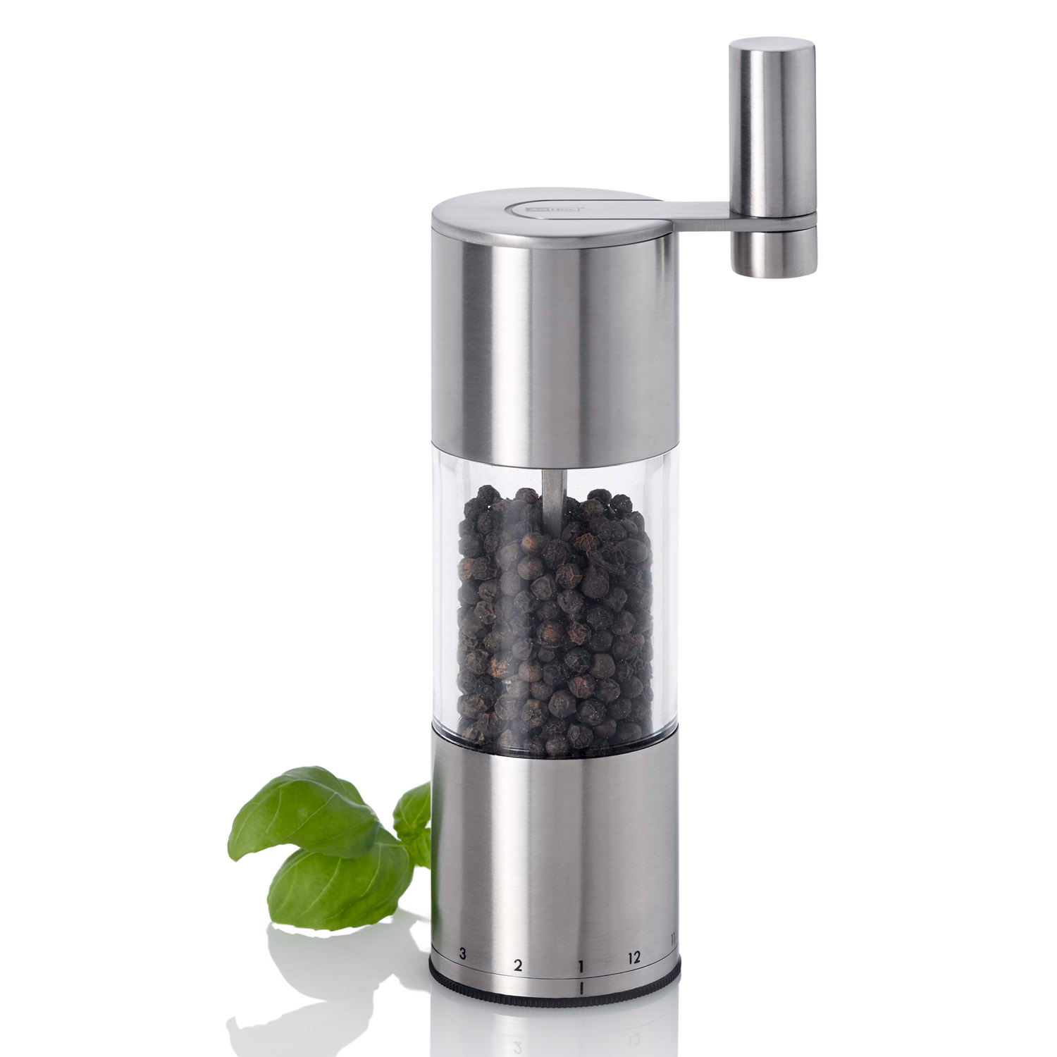 Młynek korbkowy SELECT został wyposażony w system przekładni PLANET+® ułatwiający mielenie dużych i twardych ziaren oraz w mechanizm precyzyjnego doboru grubości mielenia PRECISE+®. Zewnętrzny mechanizm precyzyjnego doboru grubości mielenia jest łatwy w użyciu i posiada 12 stopni, od proszku po grube kawałki. Młynek posiada także bardzo wydajne żarna CeraCut®, które są wolne od zapachów i smaków, a także są niezwykle odporne na zużycie i korozję. Produkt został zaprojektowany przez AdHoc Design Team. Materiał: stal nierdzewna, akryl, plastik, ceramiczne żarna CeraCut®. Wymiary: średnica – 8cm, wysokość – 20cm.