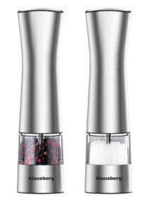 – PODŚWIETLANIE PODCZAS MIELENIA OBUDOWA ZE STALI NIERDZEWNEJ – PRZEZNACZONY DO MIELENIA: GRUBEJ SOLI, PIEPRZU INNYCH ZIÓŁ I PRZYPRAW
