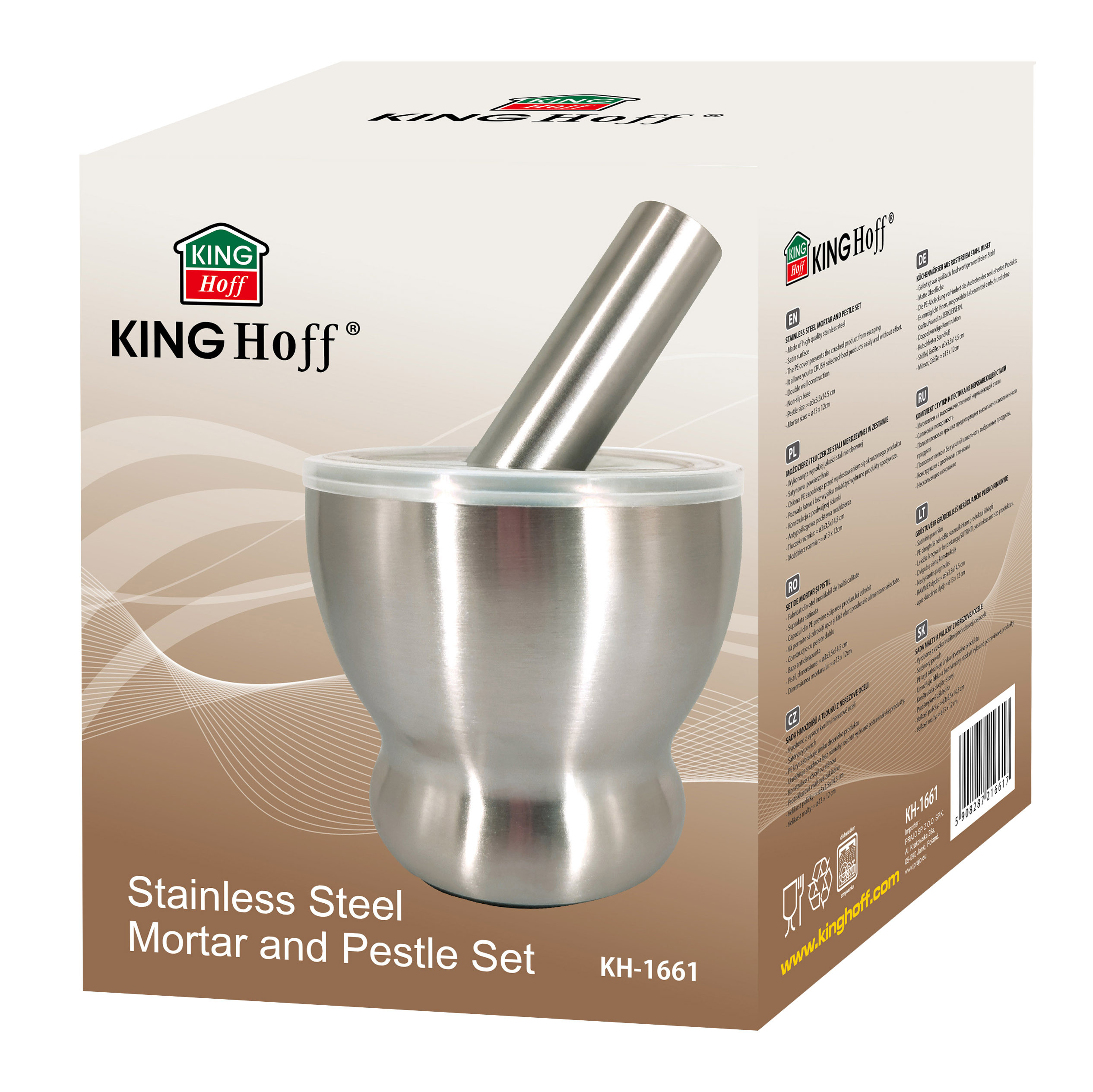 Kinghoff to popularna marka naczyń i akcesoriów kuchennych, ceniona za połączenie solidnego wykonania z atrakcyjną ceną. W ofercie znajdziesz m.in. garnki Kinghoff ze stali nierdzewnej, praktyczne patelnie Kinghoff, a także czajniki, chlebaki, sztućce i akcesoria kuchenne do codziennego użytku. Naczynia Kinghoff doskonale sprawdzają się na różnych typach kuchenek, w tym na płytach indukcyjnych, zapewniając równomierne rozprowadzanie ciepła i wygodę gotowania.