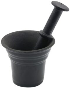 Moździerz wykonany z jednorodnego odlewu żeliwa wraz z rozgniataczem żeliwnym