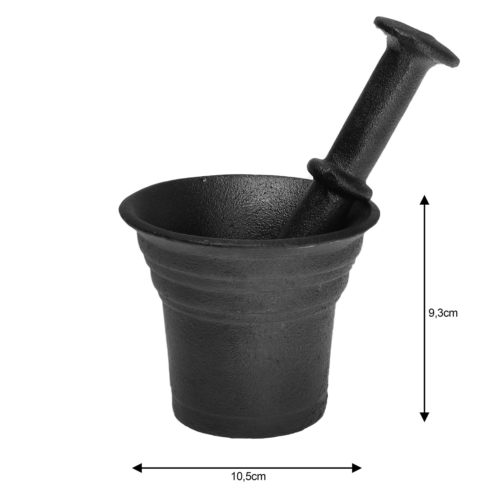 Moździerz żeliwny o średnicy Ø10,5 cm. Pozwoli szybko przygotować świeżo mielone, aromatyczne przyprawy, które są podstawą każdej dobrej kuchni. Moździerz wykonany z jednolitej bryły naturalnego granitu, ciężki. W zestawie z żeliwnym rozgniataczem.