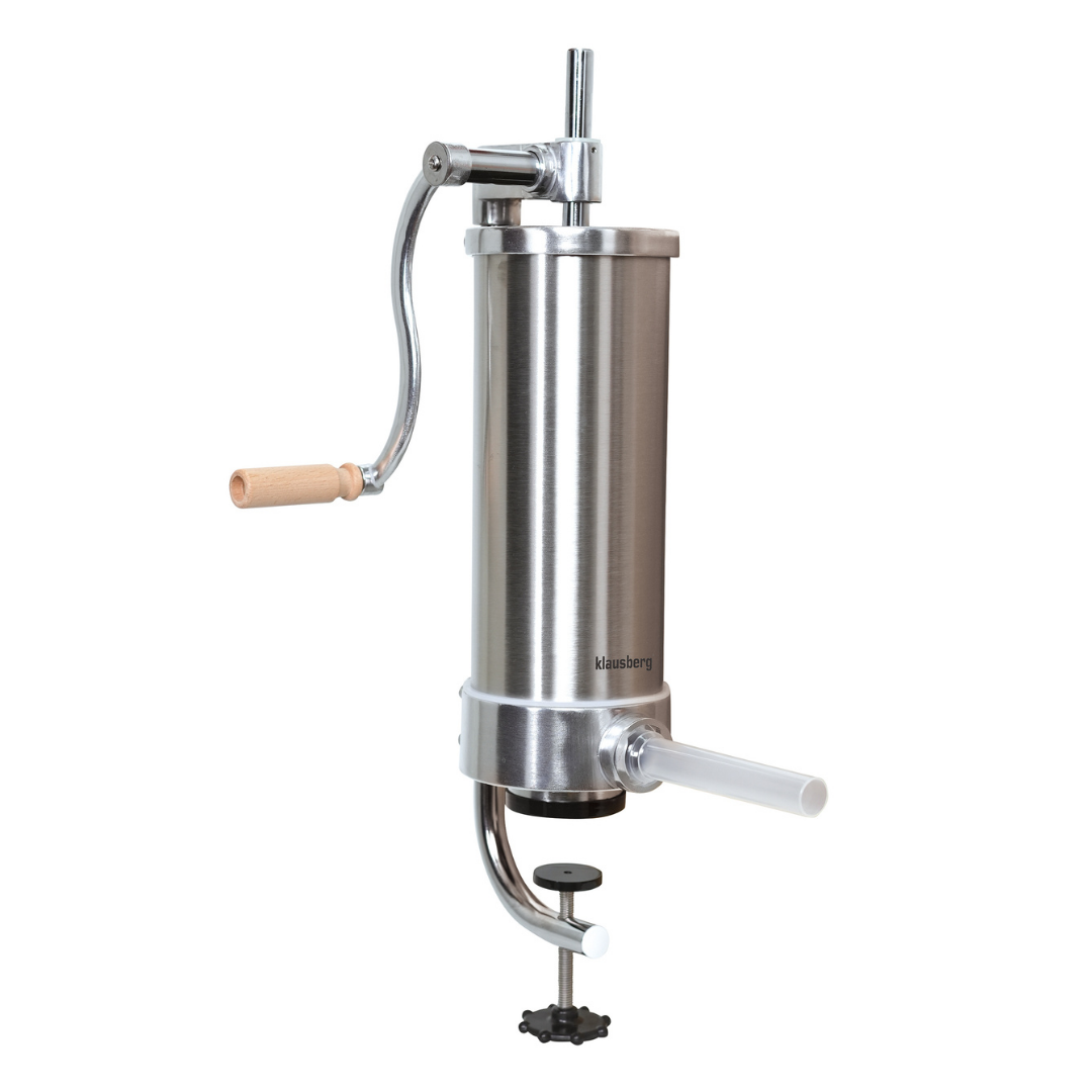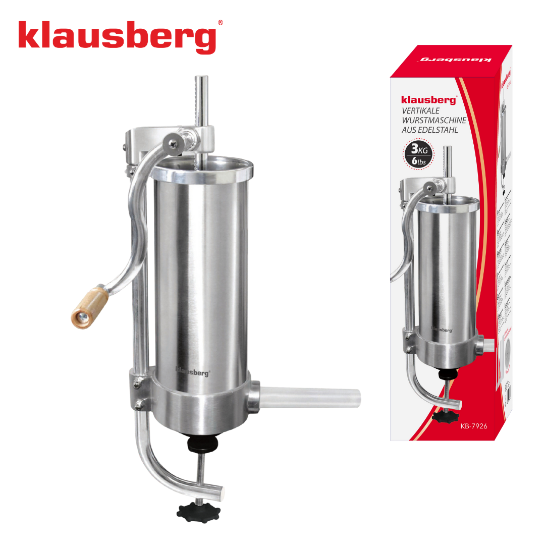 Pionowa nadziewarka do kiełbas Klausberg KB-7926 to praktyczne i solidne urządzenie, które pozwala w prosty sposób przygotować domowe wyroby mięsne. Wykonana z wysokiej jakości stali nierdzewnej, gwarantuje trwałość, higienę i wygodę użytkowania. Pojemność 3 kg sprawia, że jest idealna zarówno do przygotowania mniejszych partii, jak i większych porcji kiełbas, kabanosów czy innych domowych wyrobów. Dzięki pionowej konstrukcji napełnianie osłonek jest wyjątkowo wygodne i równomierne, a stabilne mocowanie zapewnia bezpieczną pracę.