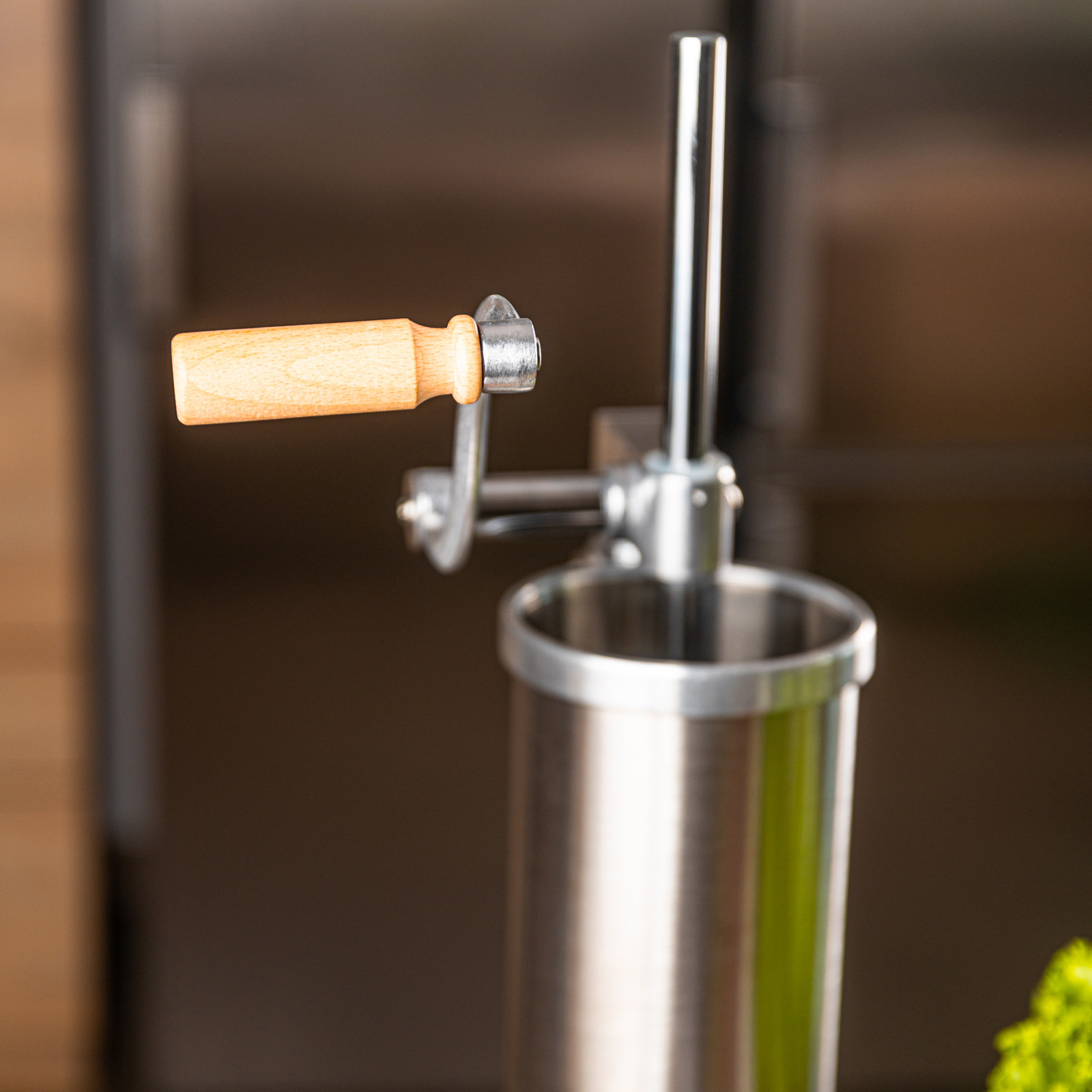 Ręczna obsługa z wygodną korbką i drewnianym uchwytem
