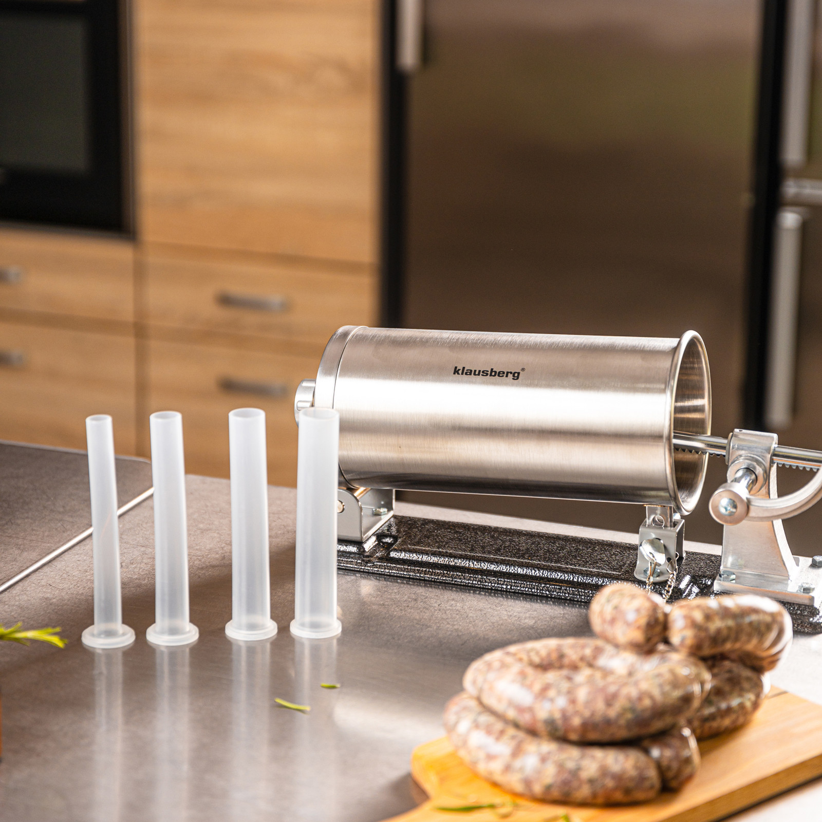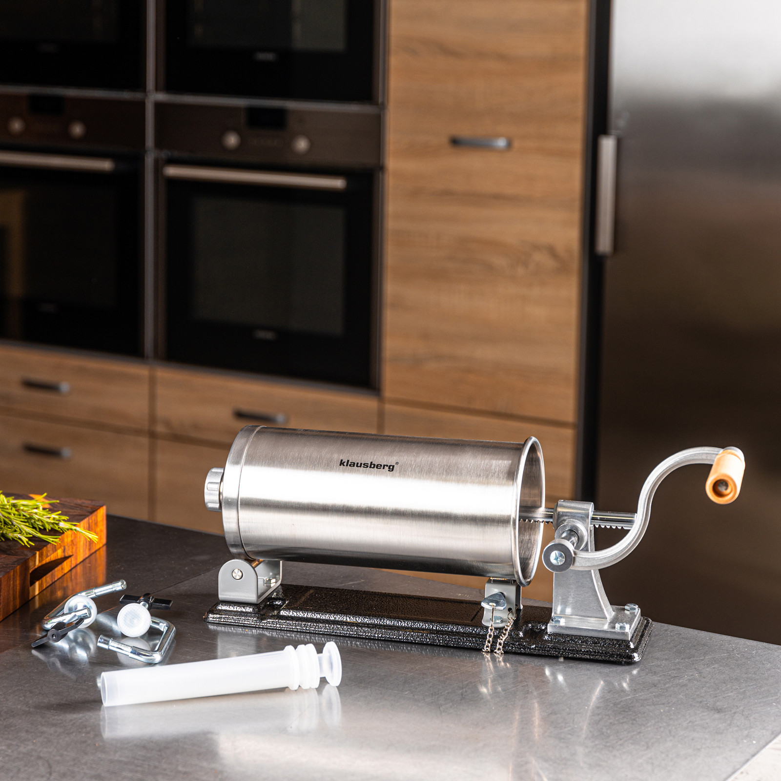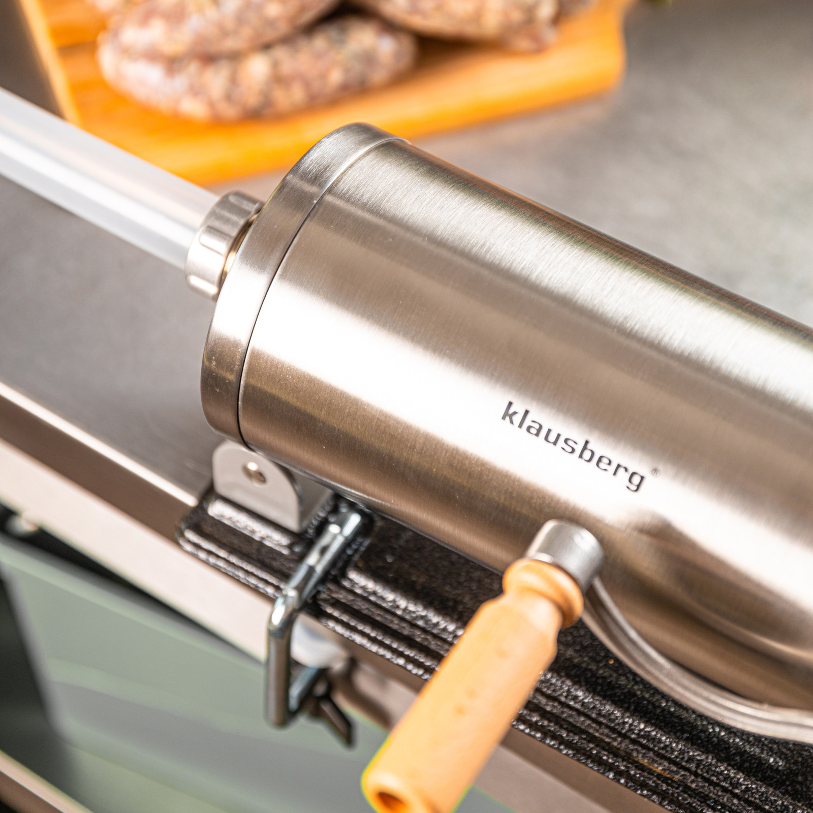 Pozioma nadziewarka do kiełbas Klausberg KB-7928 to praktyczne i solidne urządzenie stworzone z myślą o miłośnikach domowych wyrobów. Wykonana z wysokiej jakości stali nierdzewnej, zapewnia trwałość, higienę i łatwe czyszczenie. Dzięki pojemności 3 kg świetnie sprawdzi się zarówno do przygotowania mniejszych partii, jak i większej ilości kiełbas, kabanosów czy innych wyrobów mięsnych. Pozioma konstrukcja gwarantuje stabilność podczas pracy, a mocne mocowanie i ręczna korbka z drewnianym uchwytem sprawiają, że obsługa jest wygodna i bezpieczna.