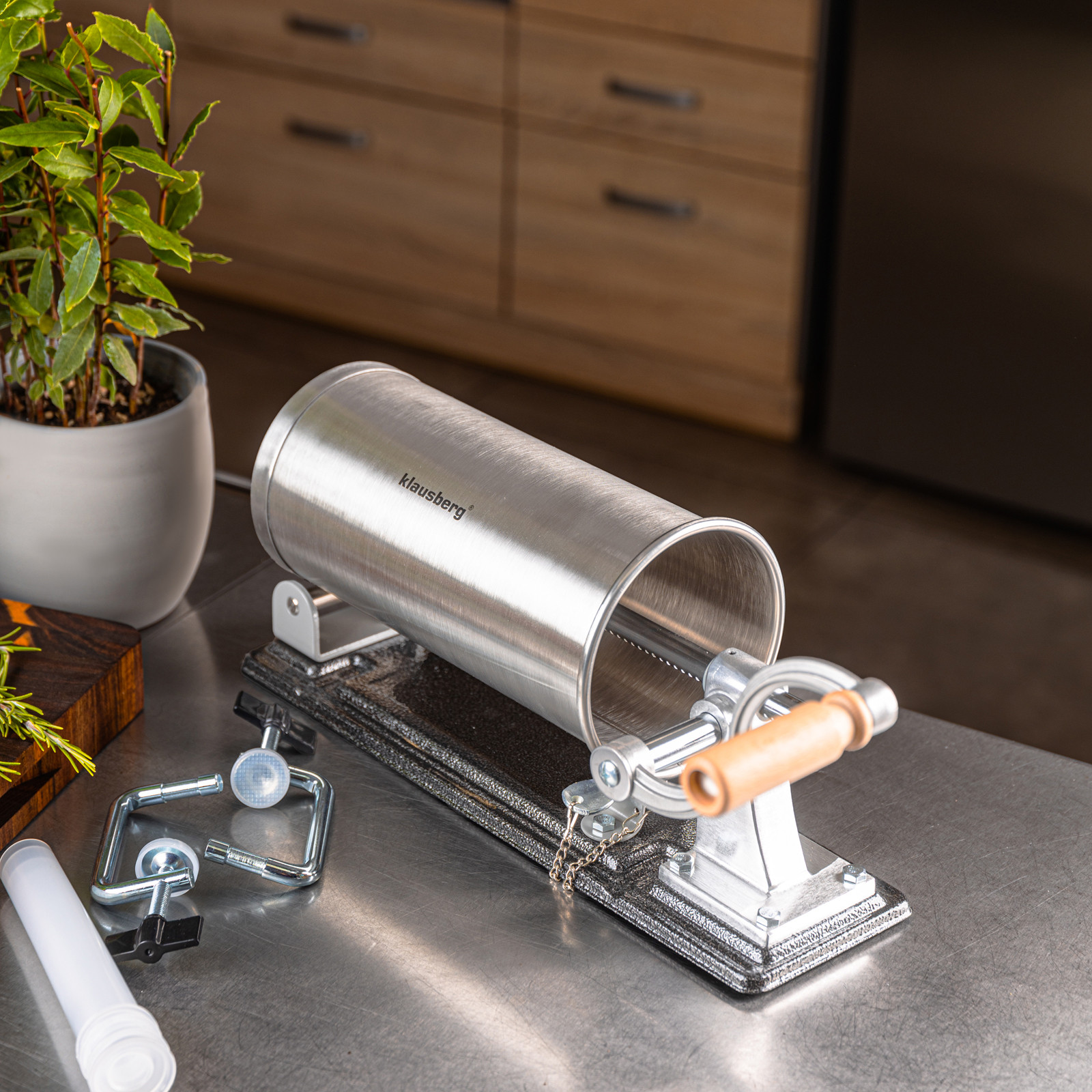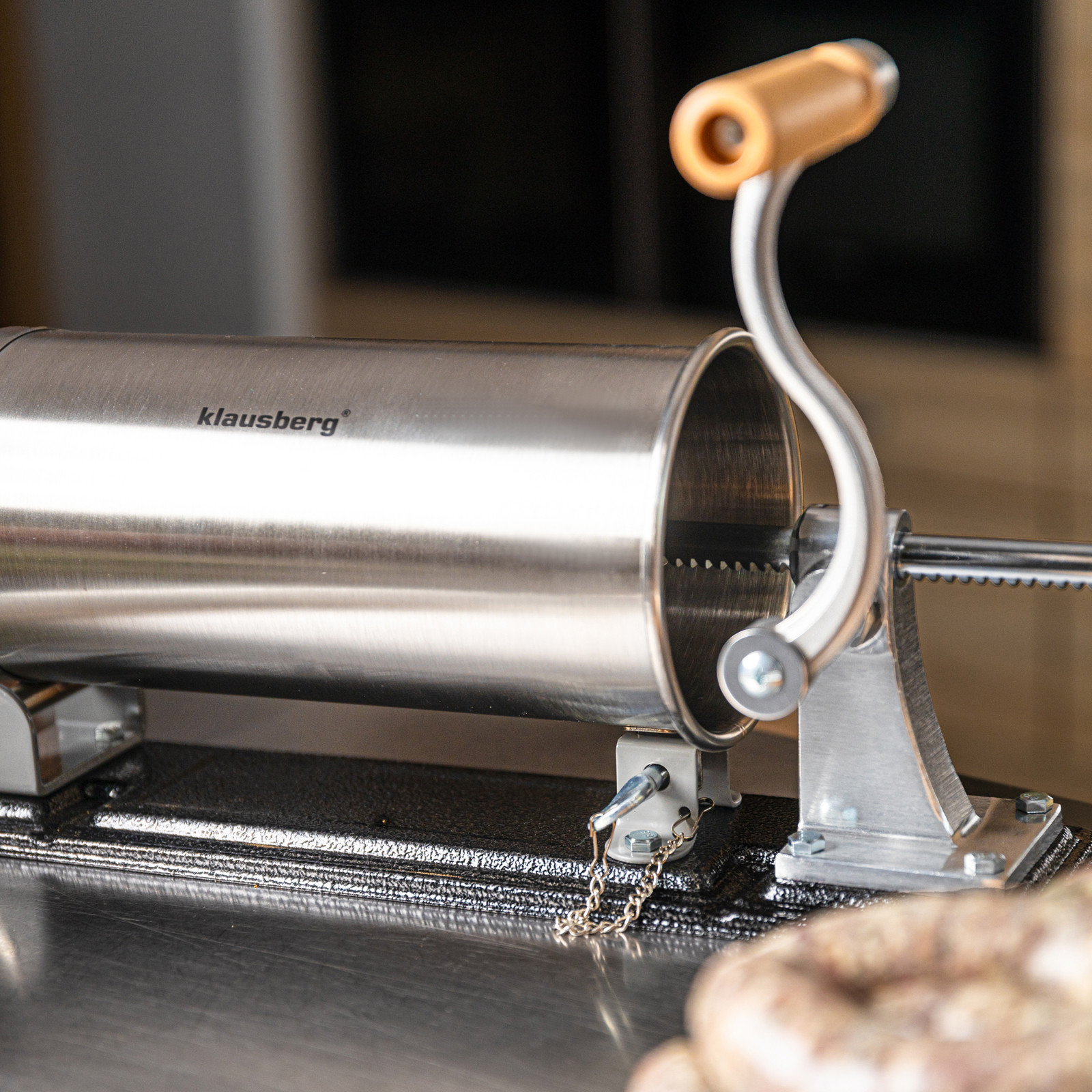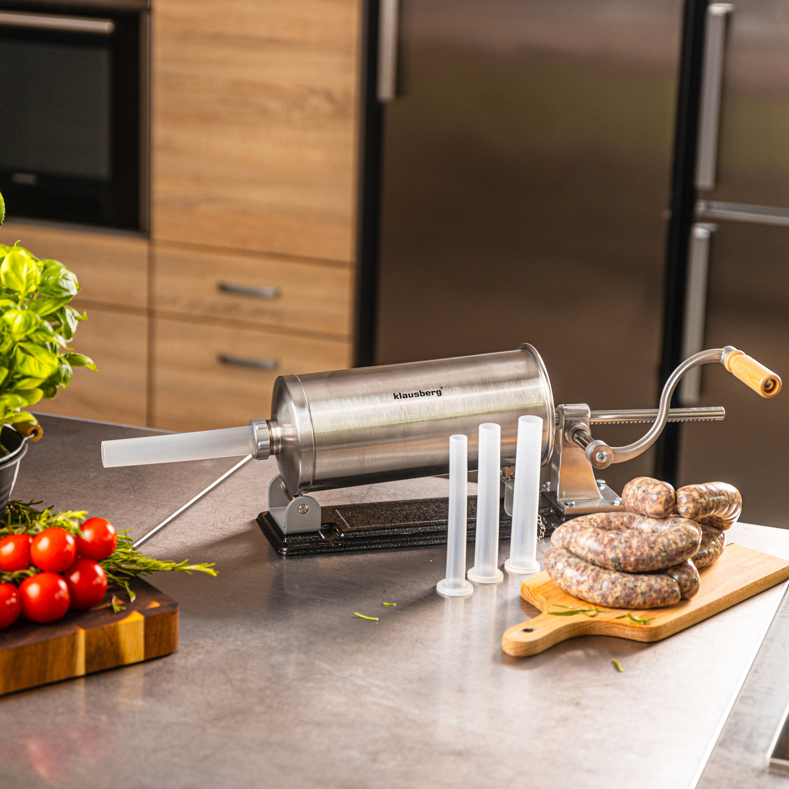 Pozioma nadziewarka do kiełbas Klausberg KB-7928 to praktyczne i solidne urządzenie stworzone z myślą o miłośnikach domowych wyrobów. Wykonana z wysokiej jakości stali nierdzewnej, zapewnia trwałość, higienę i łatwe czyszczenie. Dzięki pojemności 3 kg świetnie sprawdzi się zarówno do przygotowania mniejszych partii, jak i większej ilości kiełbas, kabanosów czy innych wyrobów mięsnych. Pozioma konstrukcja gwarantuje stabilność podczas pracy, a mocne mocowanie i ręczna korbka z drewnianym uchwytem sprawiają, że obsługa jest wygodna i bezpieczna.