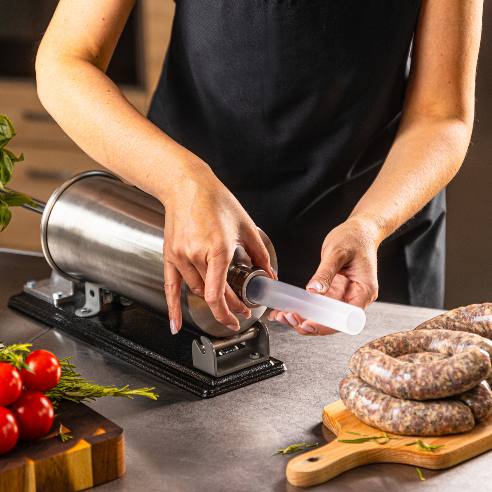 Model KB-7928 to niezawodne rozwiązanie dla osób, które chcą przygotować własne kiełbasy w domowych warunkach. Łączy w sobie prostotę obsługi, wytrzymałość i praktyczność, dzięki czemu domowa produkcja wędlin staje się szybka i wygodna.