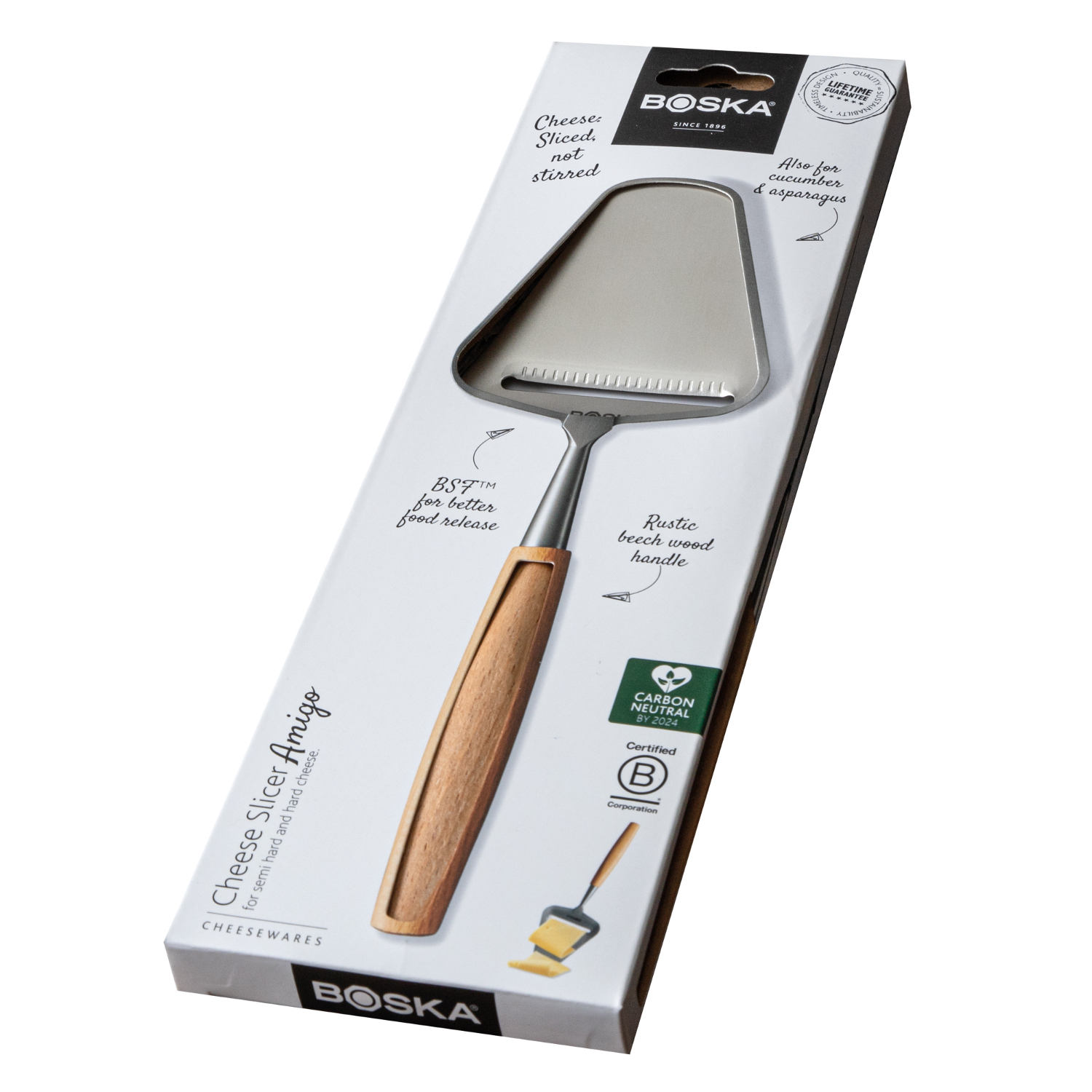 Boska Holland to rodzinna firma z ponad stuletnią historią, której założyciel, Willem Bos, już w 1896 roku zaczynał przygodę z serami w pobliżu słynnego miasta Gouda. Od tamtej pory kolejne pokolenia kontynuują tradycję, projektując wyrafinowane narzędzia, które sprawiają, że degustacja sera staje się prawdziwym doświadczeniem. Dziś Boska jest bezsprzecznie liderem w tworzeniu akcesoriów serowych – oferuje największy wybór takich produktów na świecie, dostępnych w aż 90 krajach. Właściciele marki stawiają na połączenie najwyższej jakości, ergonomii oraz przyciągającego wzornictwa. Ich podejście potwierdzają aż sześć nagród Red Dot Design Award, które firma zdobyła za swoje innowacyjne projekty. Katalog produktów Boska obejmuje nie tylko klasyczne, użytkowe akcesoria do domu – takie jak noże, tarki, deski, tarki czy TVory – ale również profesjonalne urządzenia dla sektora gastronomicznego i przemysłowego: zaawansowane systemy do krojenia, pakowania oraz serwowania sera. Każdy element został stworzony z myślą o maksymalnej wydajności i estetyce. Akcesoria Boska to idealny pomysł na prezent dla miłośników sera – eleganckie, solidne i z charakterystycznym ekskluzywnym wyglądem, który chętnie ozdabia kolekcje domowych kuchni. Z Boska Holland smak sera nabiera nowego wymiaru – odkryj go, sięgając po ich produkty!
