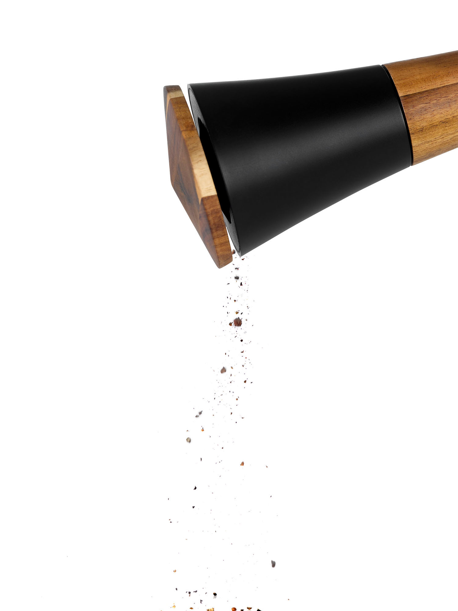Młynek został wyposażony w innowacyjny system dopasowania ustawień mielenia i dystrybucji zmielonej przyprawy. Stworzony do zróżnicowanych rodzajów soli i pieprzu. Posiadają bardzo wydajne żarna CeraCut®, które są wolne od zapachów i smaków, a także są niezwykle odporne na zużycie i korozję. Zdejmowalne pokrętło umożliwia wygodne napełnianie młynka przyprawami, a gniazdo wylotowe sprawia, że dozowanie zmielonych przypraw jest precyzyjne i łatwe jak nigdy dotąd. Dysk ze skalą grubości mielenia daje możliwość płynnego dostosowania jej od drobnego do grubego rozmiaru, a dodatkowo zapewnia utrzymanie blatu w czystości. Dysk można odkręcić i wyczyścić. Nie należy myć w zmywarce.