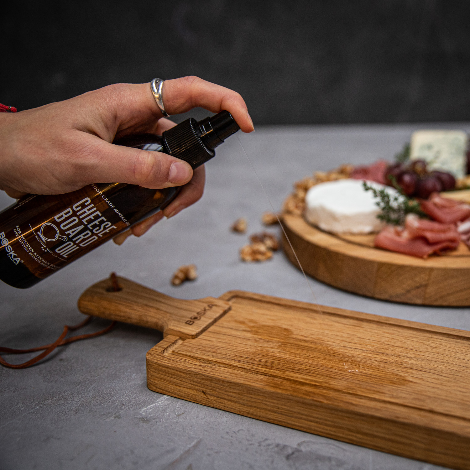 Regularne olejowanie drewna sprawia, że będziesz mógł cieszyć się nim jeszcze dłużej. Przed pierwszym użyciem spryskaj deskę olejem a następnie suchą szmatką wetrzyj olej i pozostaw w pozycji pionowej na noc. Czynność powtarzaj przez trzy dni z rzędu. Deskę oraz inne elementy drewniane konserwuj olejem przynamniej raz w miesiącu. Regularne spryskiwanie deski bezwonnym i bezzapachowym olejem uchroni ją przed pękaniem, plamami oraz pochłanianiem zapachów. Olej może być również stosowany do innych drewnianych elementów narzędzi przeznaczonych do kontaktu żywnością takich jak noże, krajalnice do sera i tarki z drewnianymi uchwytami. Opakowanie: brak. Pojemność – 200ml.