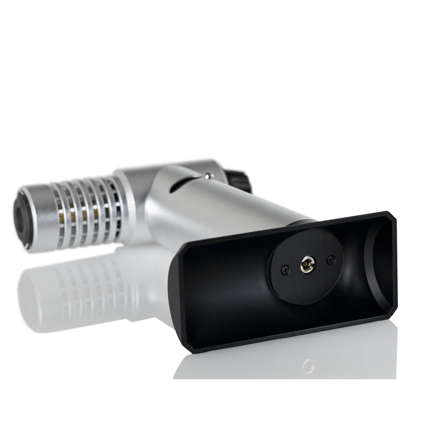 Jest to narzędzie przeznaczone do flambirowania, karmelizowania, szklenia, rozpuszczania, za pomocą którego uzyskamy także aromat pieczenia lub przypalania. Palnik odpala się naciskając na ciśnieniowy przycisk umieszczony z tyłu obudowy palnika wraz z wygodnym obrotowym mechanizmem blokującym, umożliwiającym ciągłe użycie płomienia bez potrzeby naciskania na przycisk. Z boku obudowy palnika umieszczono suwak do regulacji natężenia płomienia. Palnik posiada niezawodny piezoelektryczny starter, a do napełnienia wystarczy gaz do zapalniczek. W celu zapewnienia najwyższego poziomu bezpieczeństwa palnik wyposażono w blokadę bezpieczeństwa, zapobiegającą niezamierzonemu zapłonowi. Ten bardzo solidny produkt został zaprojektowany przez AdHoc Design Team. Materiał: metal, tworzywo sztuczne. Wymiary: długość – 10cm, szerokość – 4,3cm, wysokość – 14cm.