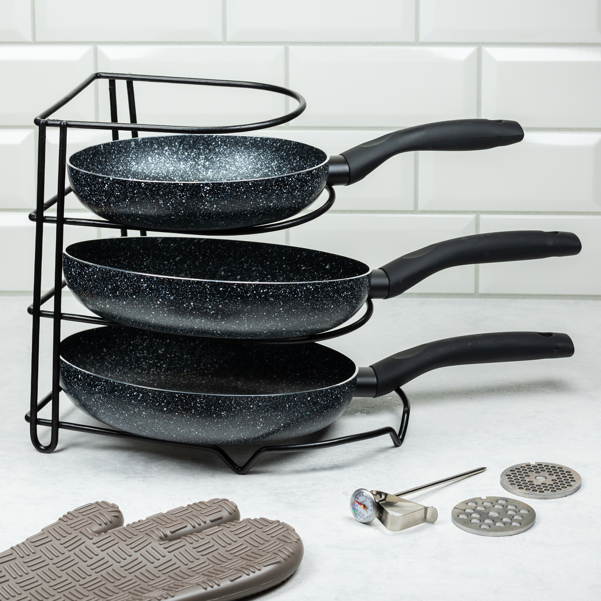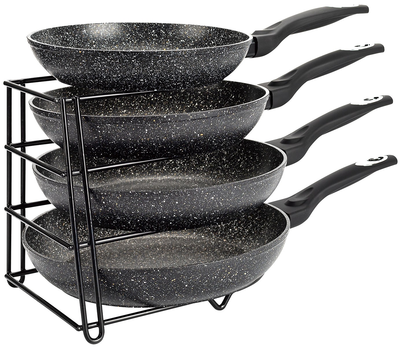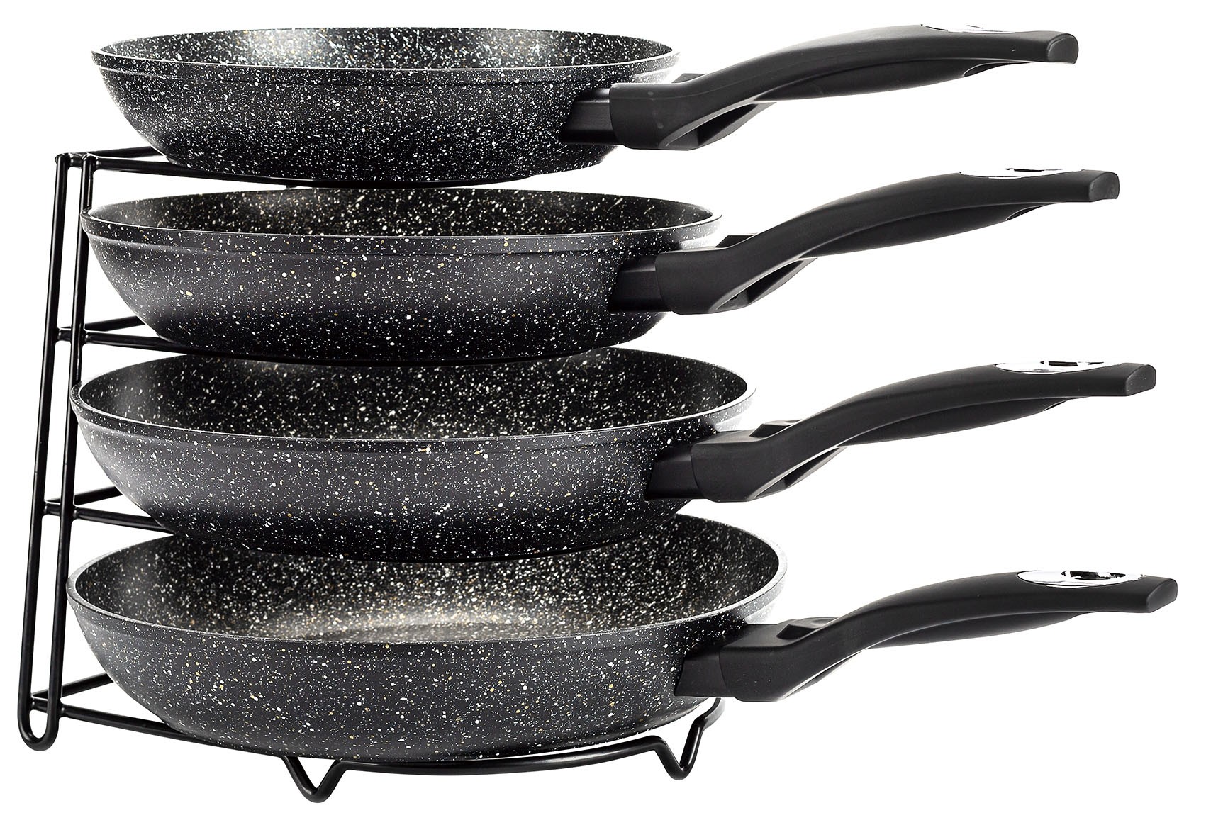 – Ułatwia przechowywanie patelni, bez układania jednej na drugiej.