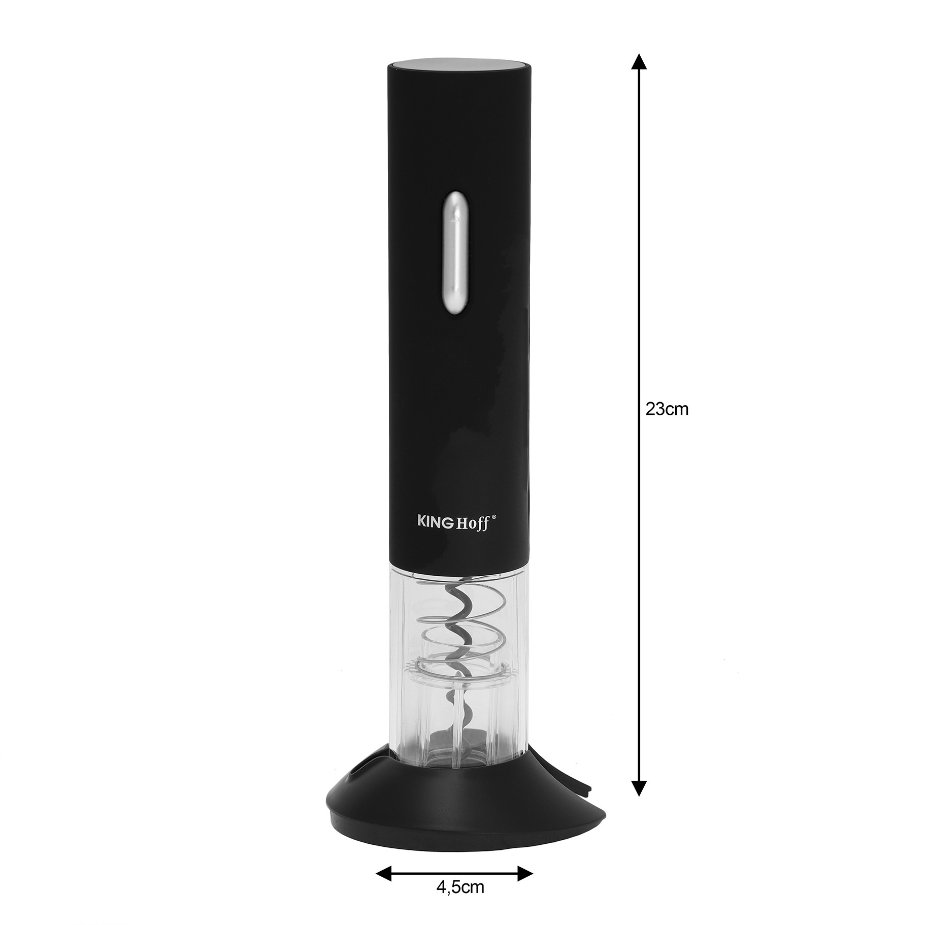 Korkociąg elektryczny do wina którym bez problemu otworzysz każdą zakorkowaną butelkę. Zasilany bateryjnie. Do zestawu dołączony jest również obcinacz do folii będący jednocześnie podstawką. Wyjątkowe połączenie eleganckiego wyglądu i wysokiej jakości to najlepsze rozwiązanie, polecane osobom ceniącym sobie ponadczasową stylistykę. Niezawodność działania i prosta obsługa dają Ci gwarancję, że wybierasz sprzęt, z którego będziesz długo i bezproblemowo korzystać.