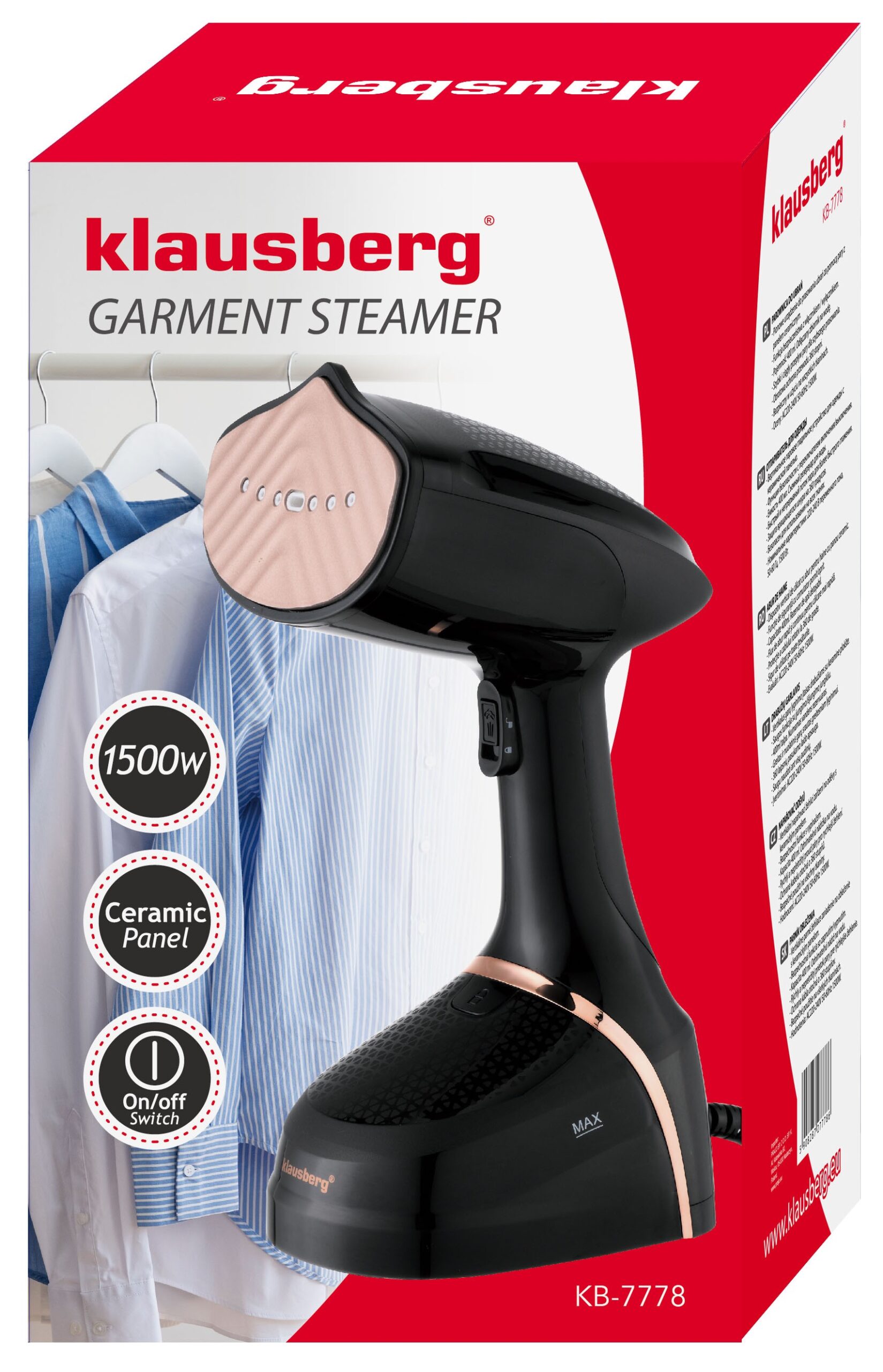 Parownica KLAUSBERG KB-7778 to niezastąpiony pomocnik w dbaniu o garderobę i tekstylia domowe. Jej elegancki wygląd, połączony z wysoką funkcjonalnością, sprawia, że prasowanie staje się szybkie, proste i przyjemne. Dzięki nowoczesnej technologii parowej, ubrania i materiały będą wyglądały świeżo i schludnie, bez potrzeby użycia tradycyjnego żelazka. To idealne urządzenie dla osób, które cenią sobie wygodę, efektywność oraz estetykę w jednym.