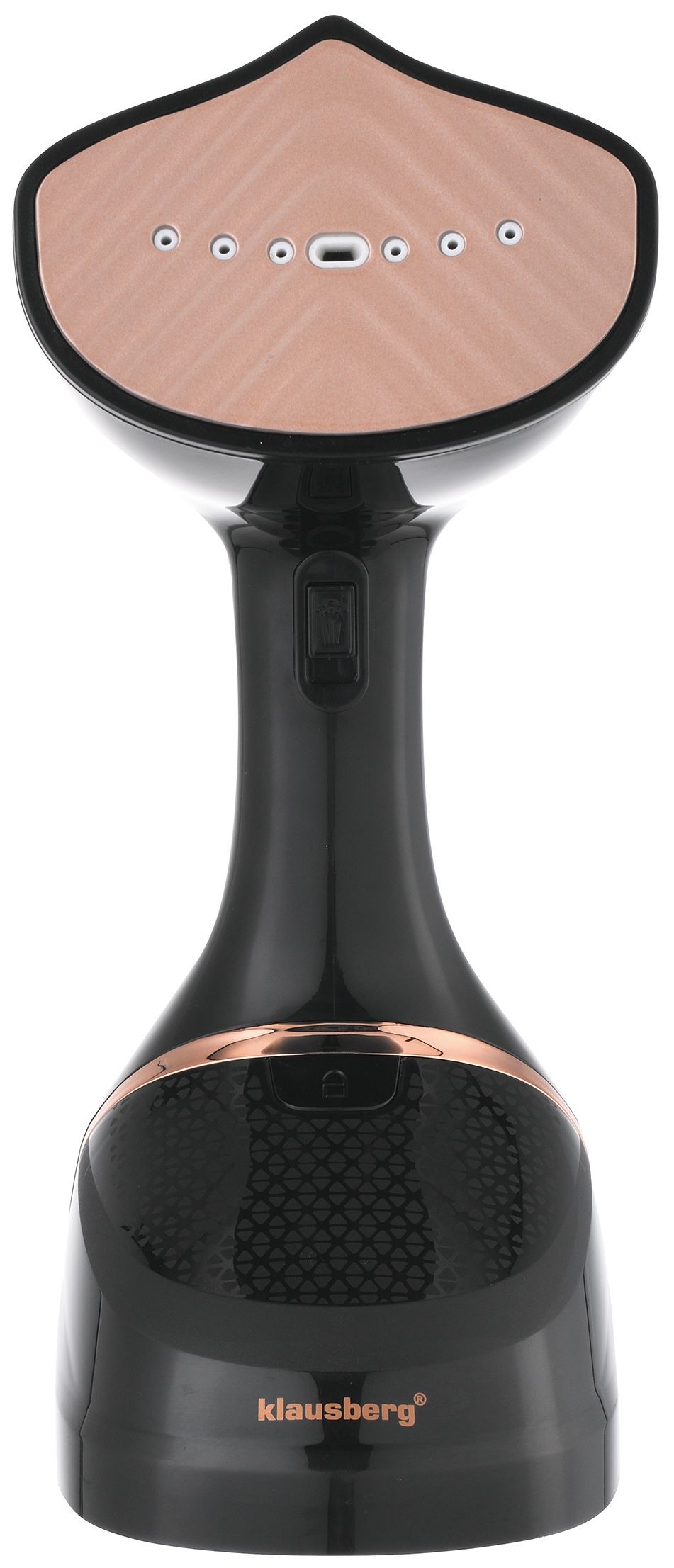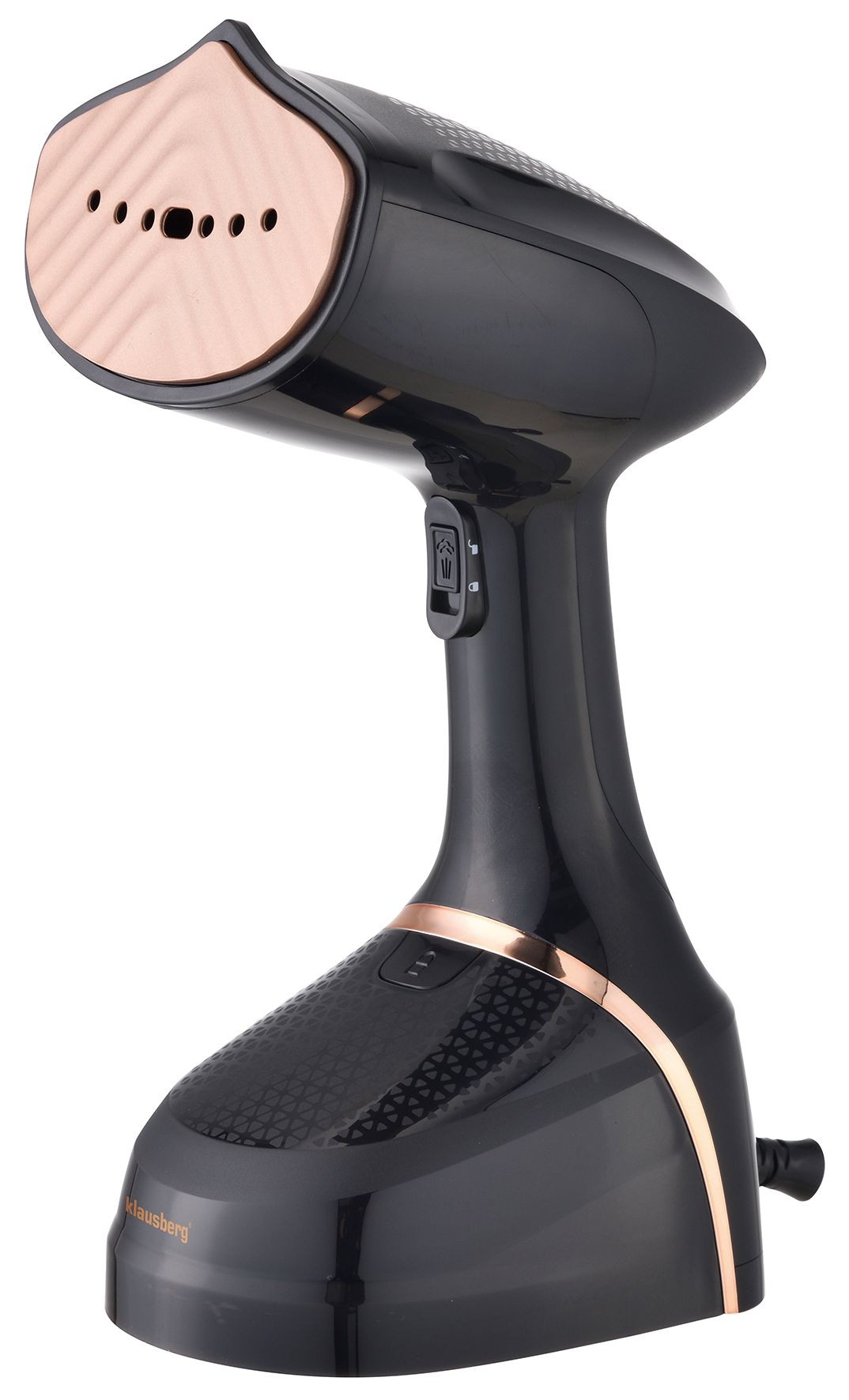 Parownica do pionowego prasowania ubrań, pojemność 400ml, czarna ze złotym panelem ze stali nierdzewnej, Klausberg