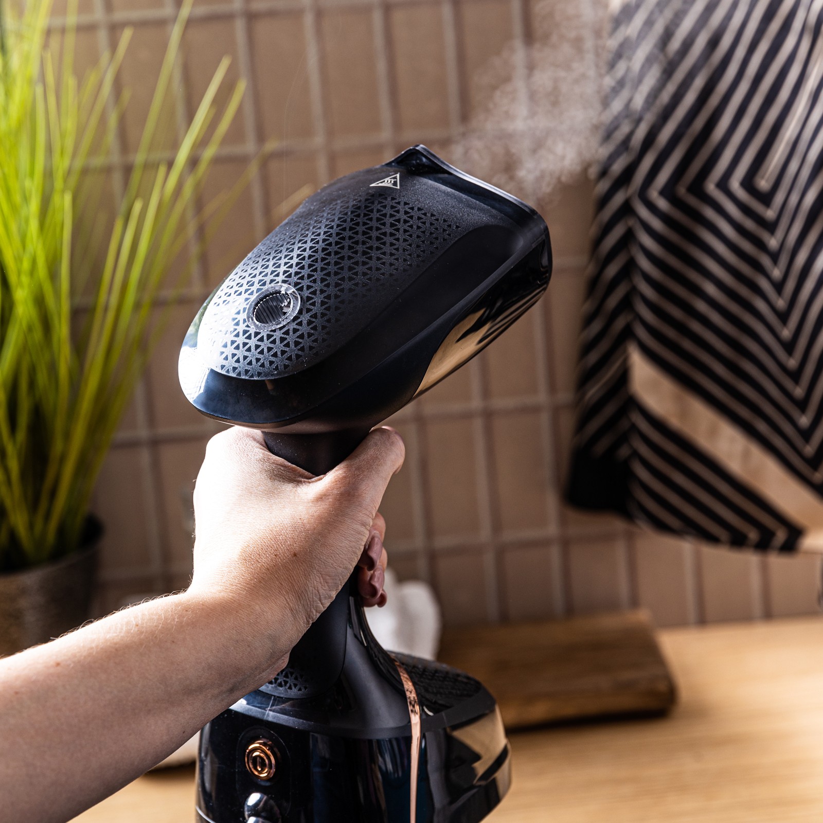 • Dezynfekcja materiałów: wysoka temperatura pary neutralizuje bakterie, roztocza oraz inne alergeny, podnosząc higienę tkanin.