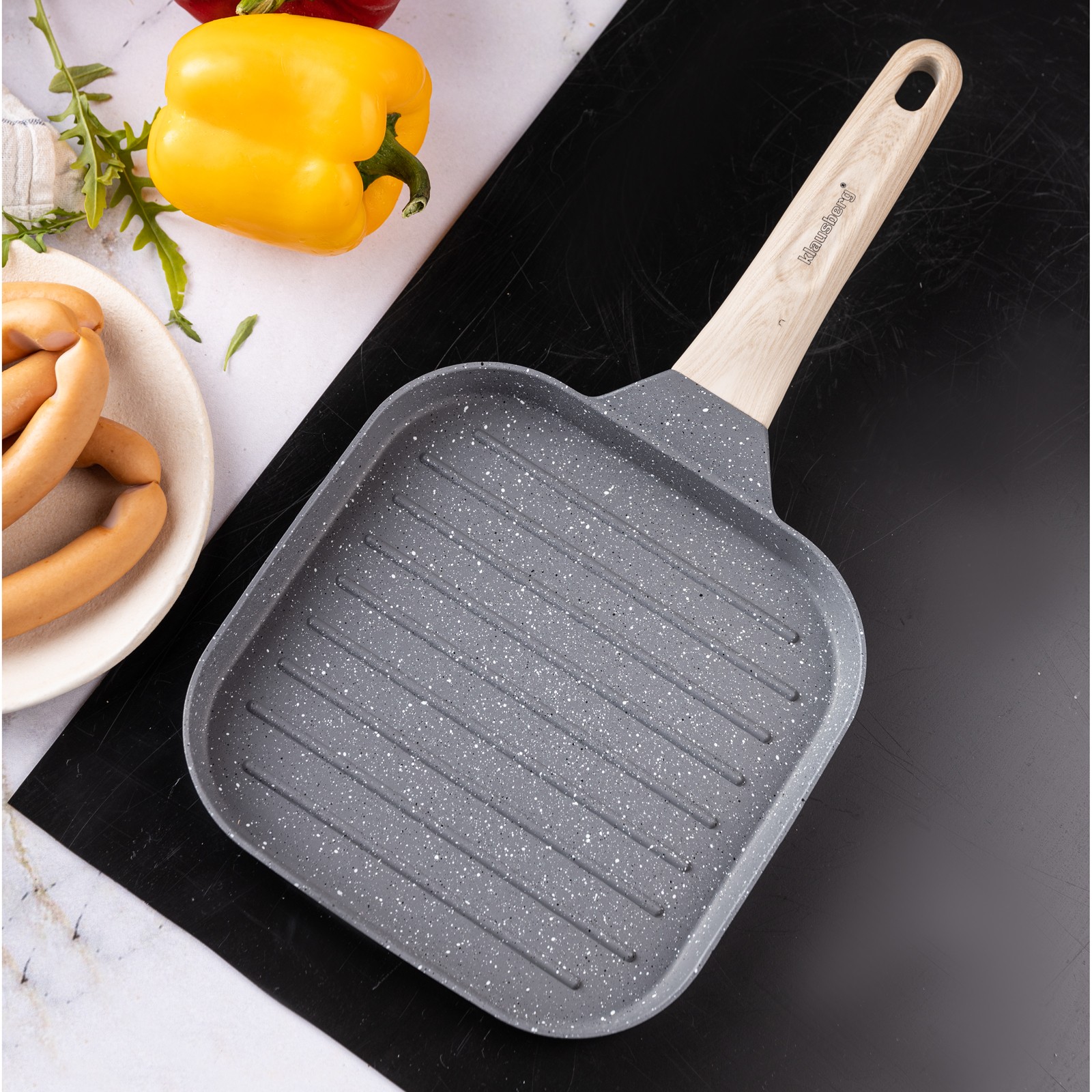Patelnia grillowa z powłoką nieprzywierającą, szara z drewnianą rączką, 36×18,5×2,5cm, Klausberg
