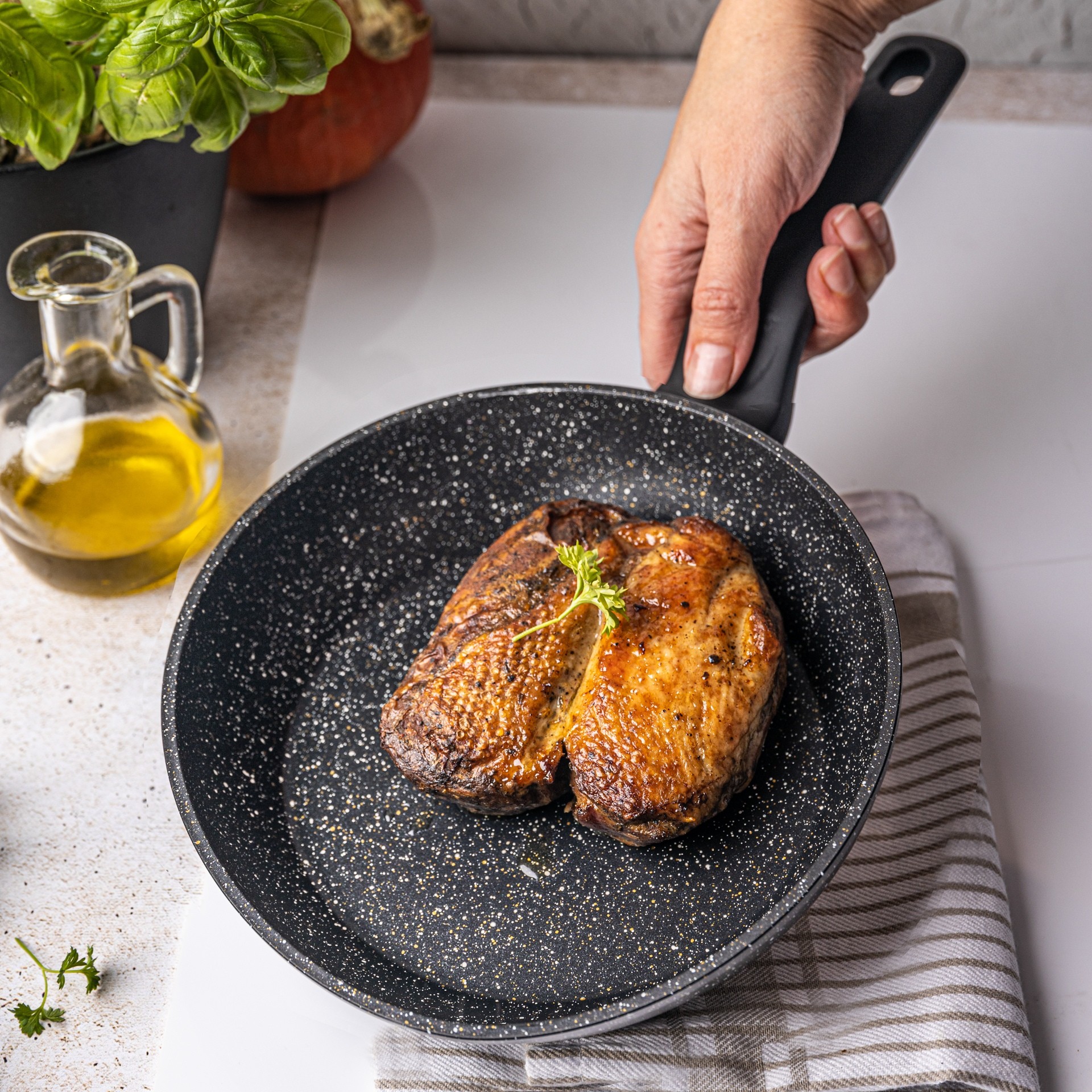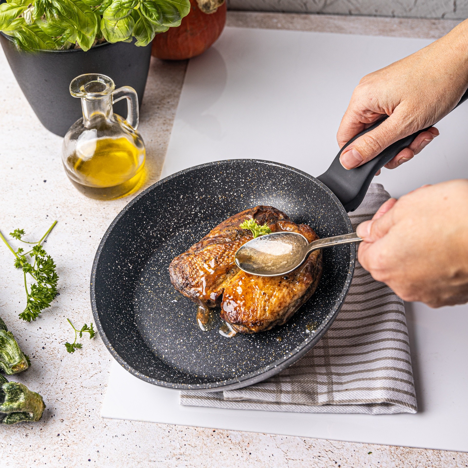 -Nieprzywieralna marmurowa powłoka umożliwiająca zdrowe gotowanie -Wykonana z wysokiej jakości aluminium
