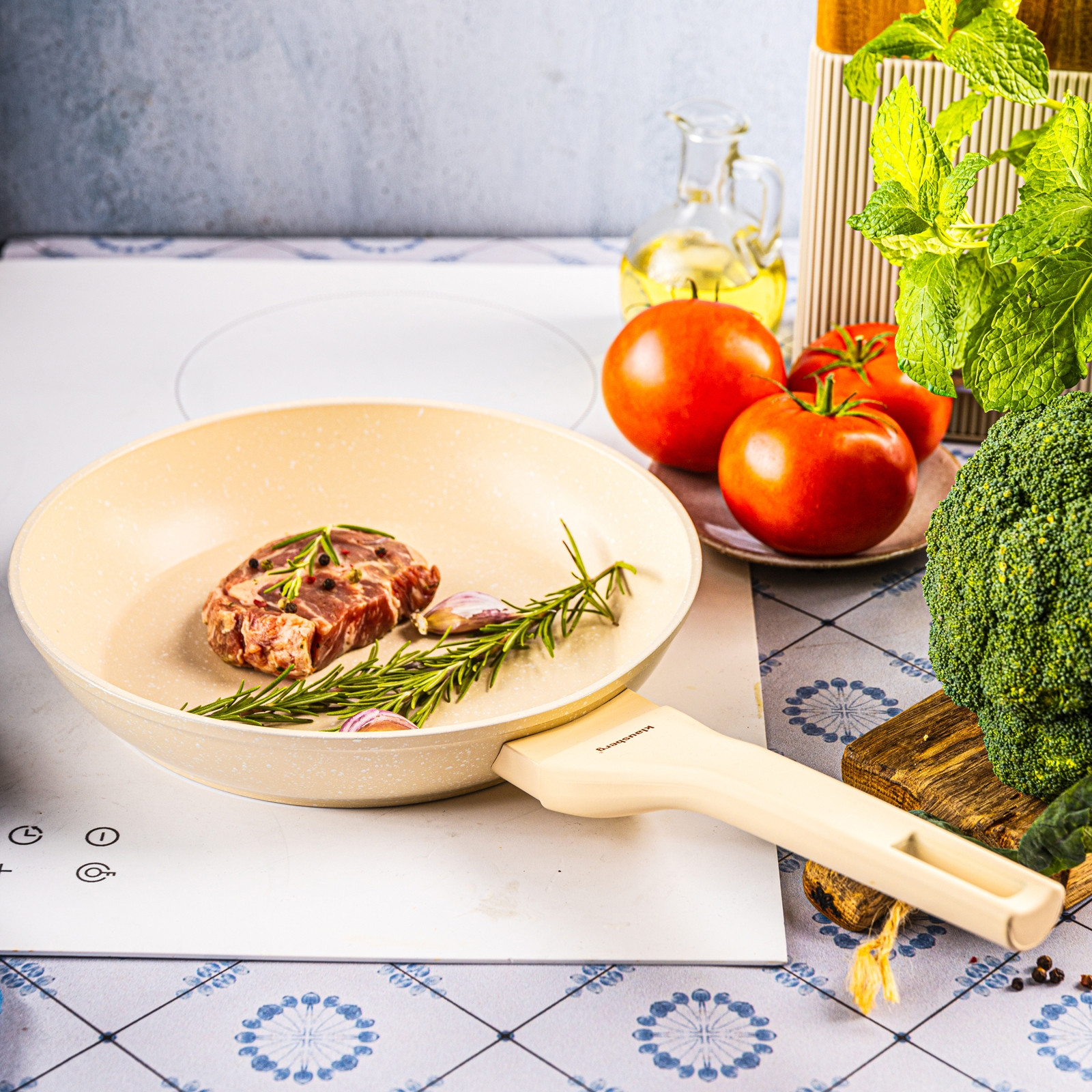 Może pojawić się lekki zapach produkcyjny, który szybko znika. Przed pierwszym smażeniem należy patelnię umyć, wysuszyć i delikatnie natłuścić.