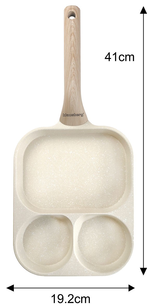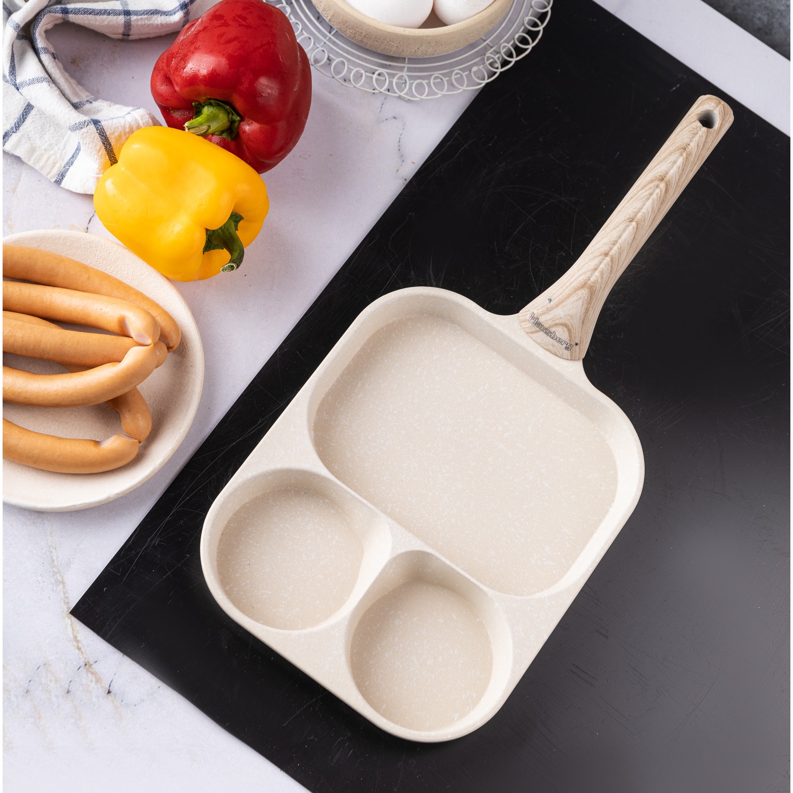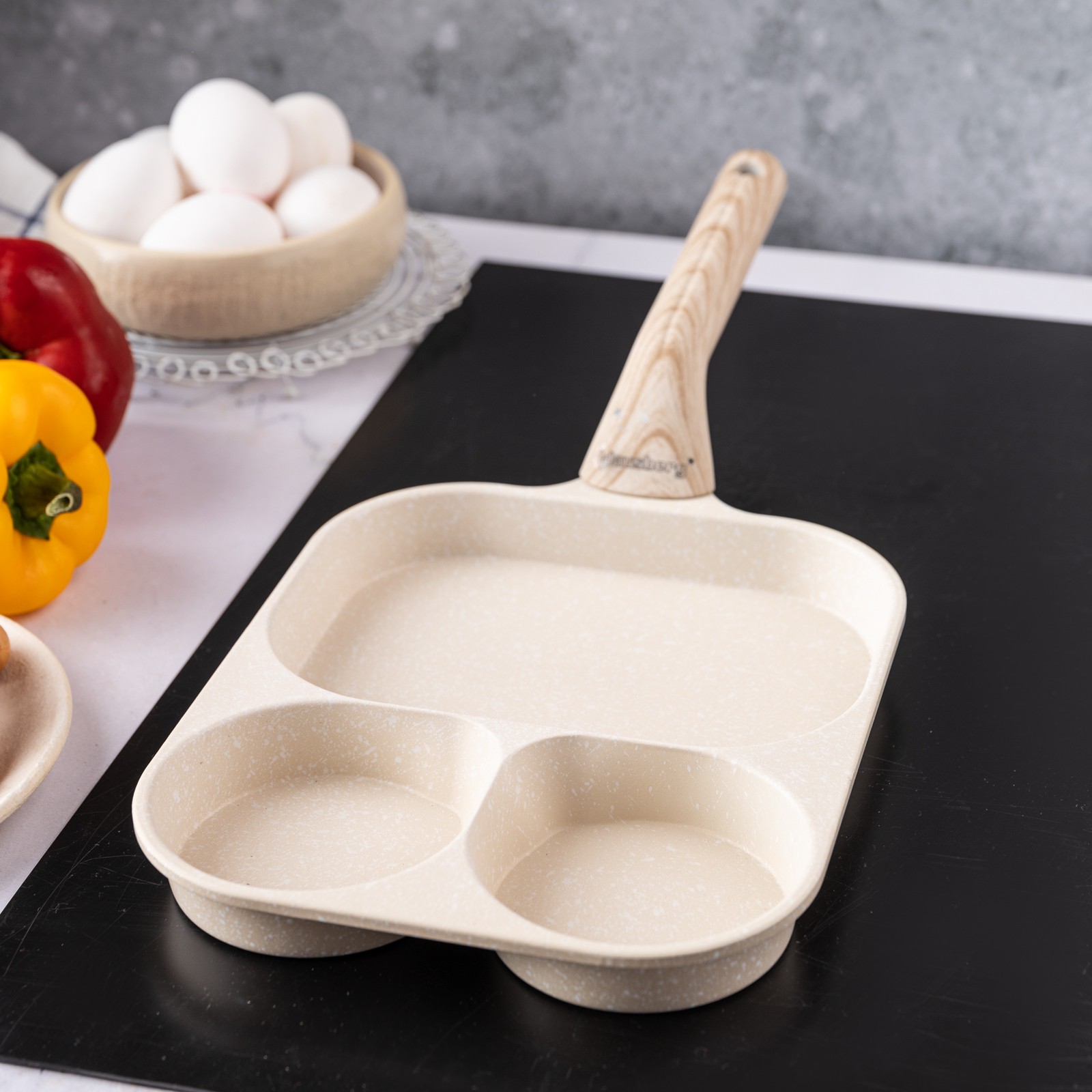 3. Zaprojektowany kształt z 3 formami: 2 do przyrządzania jajek, 1 podłużna do bekonu lub warzyw, mini naleśników, burgerów lub dowolnego innego przepisu, który lubisz podawać na codzienne śniadanie.